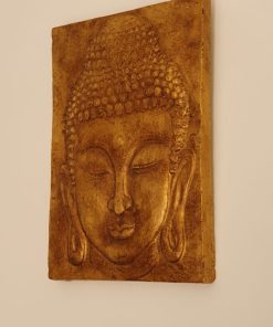 Buda tallado en madera con foil dorado