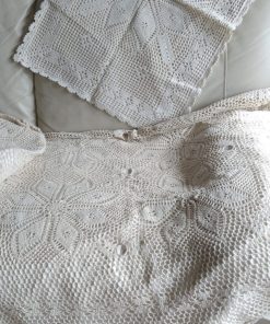 Set piecera crochet 1 plaza y 2 cojines velvet