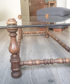 Mesa de centro vidrio y madera tallada