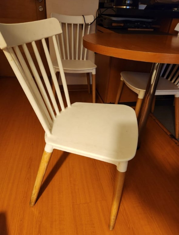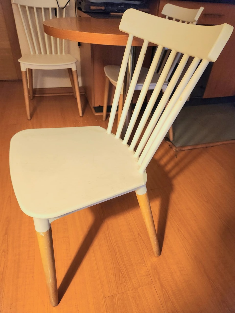 Etiquetas: 3 sillas, blancas, buen estado, madera, polipropileno, Windsor