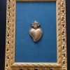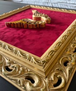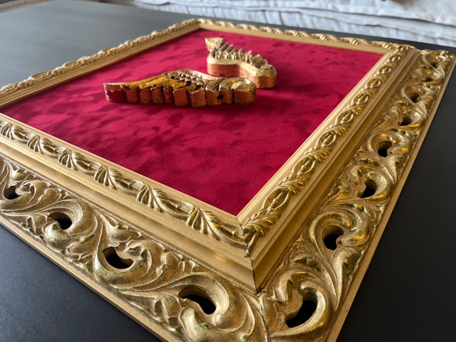 Alas madera en madera folia dorada y terciopelo rojo