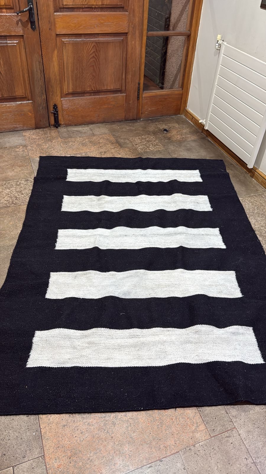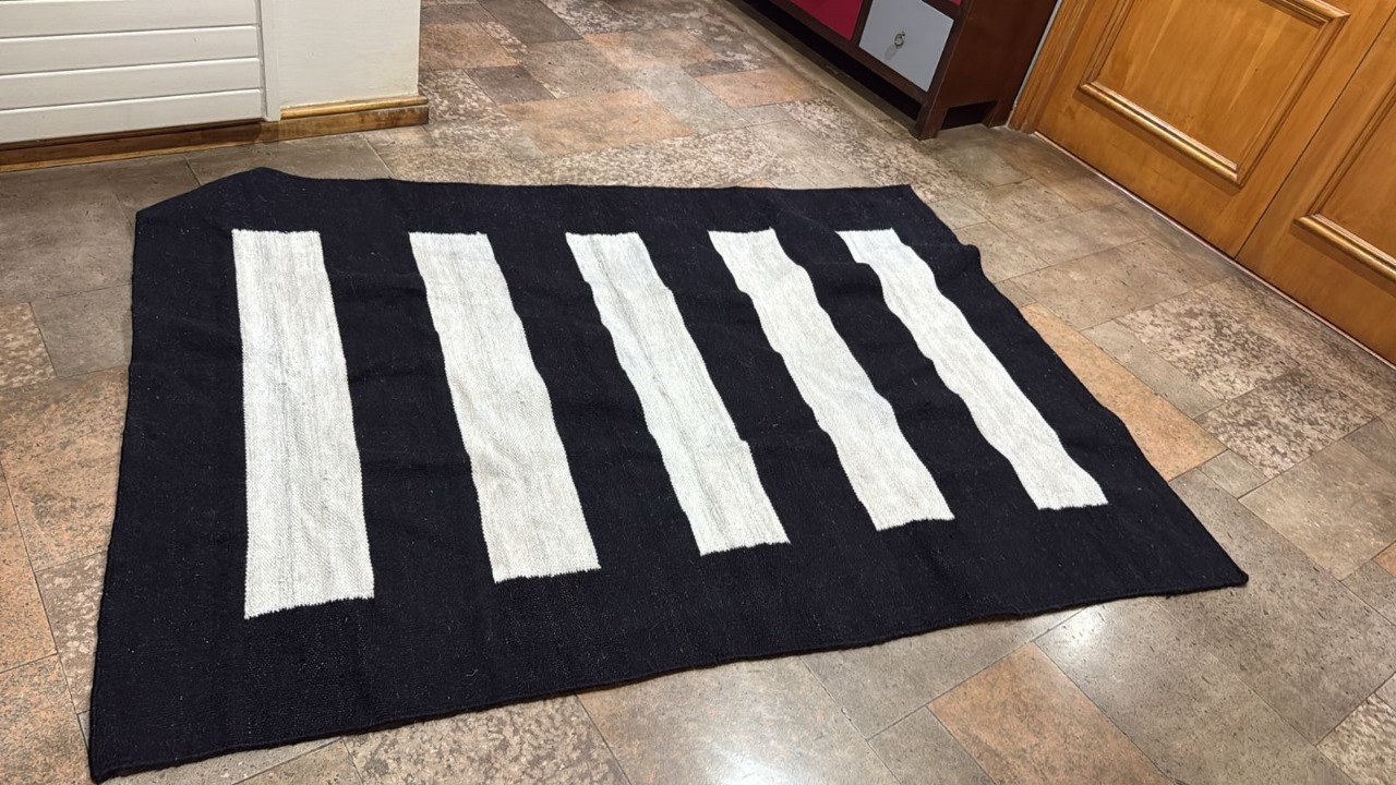 Etiquetas: alfombra artesanal, alfombra blanca y negra, Alfombra de alta calidad, Alfombra de diseño moderno, Alfombra de lana, alfombra decoración hogar, alfombra en buen estado, Alfombra lana blanco y negro, Alfombra para sala, Alfombra suave, alfombra usada, Alfombra vintage
