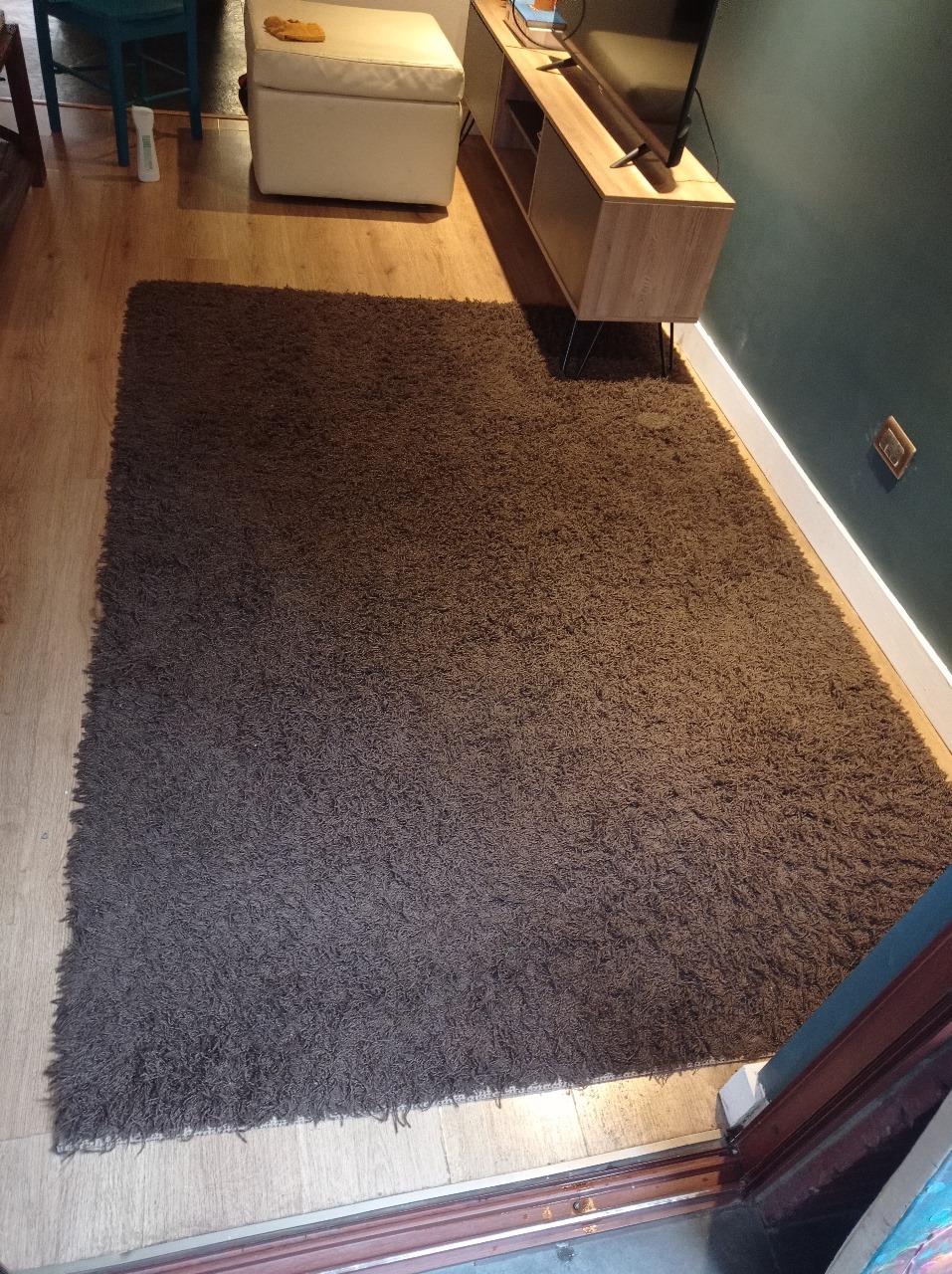 Etiquetas: alfombra, café, material sintético, shaggy, sin detalles
