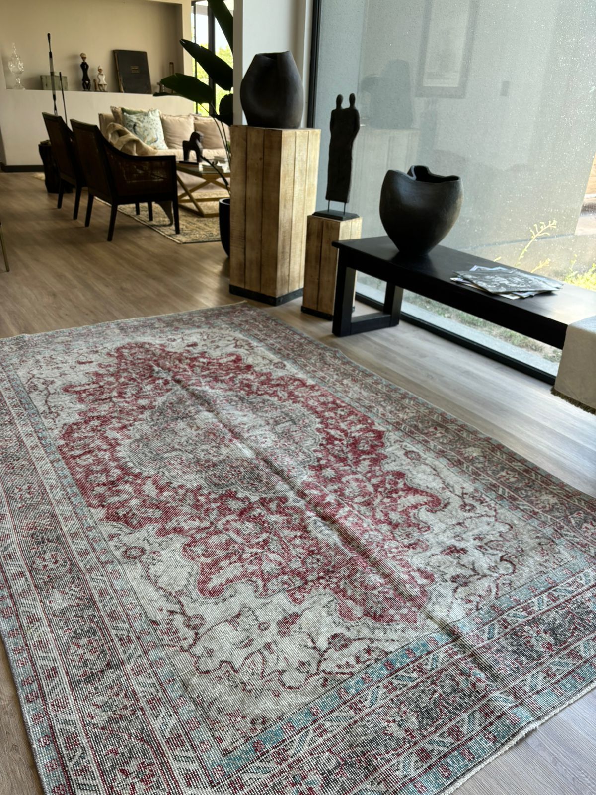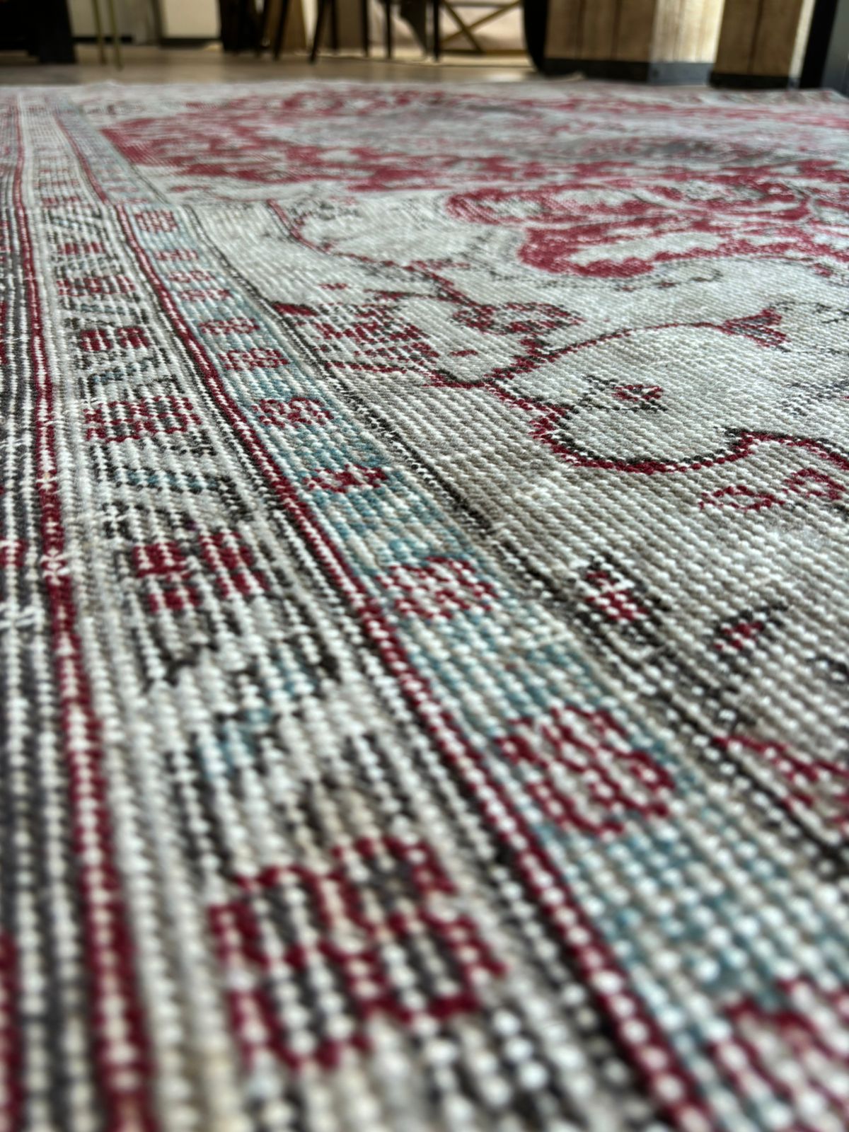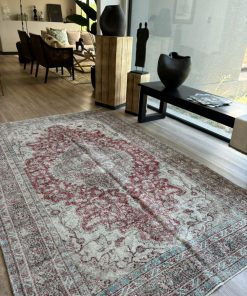 Alfombra Turca beige y burdeo