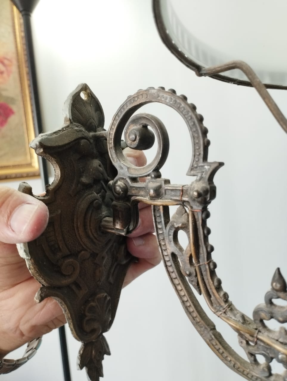 Etiquetas: Aplique antiguo, Aplique de bronce, Aplique de bronce con tulipa, Aplique de diseño clásico, Aplique de estilo clásico, aplique de pared, aplique decorativo, aplique funcional, Aplique para salón, Aplique retro, aplique usado, Aplique vintage, decoración de pared, iluminación de segunda mano, iluminación usada, iluminación vintage, lampara de bronce, Lámpara de bronce con tulipa, Lámpara de pared usada