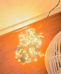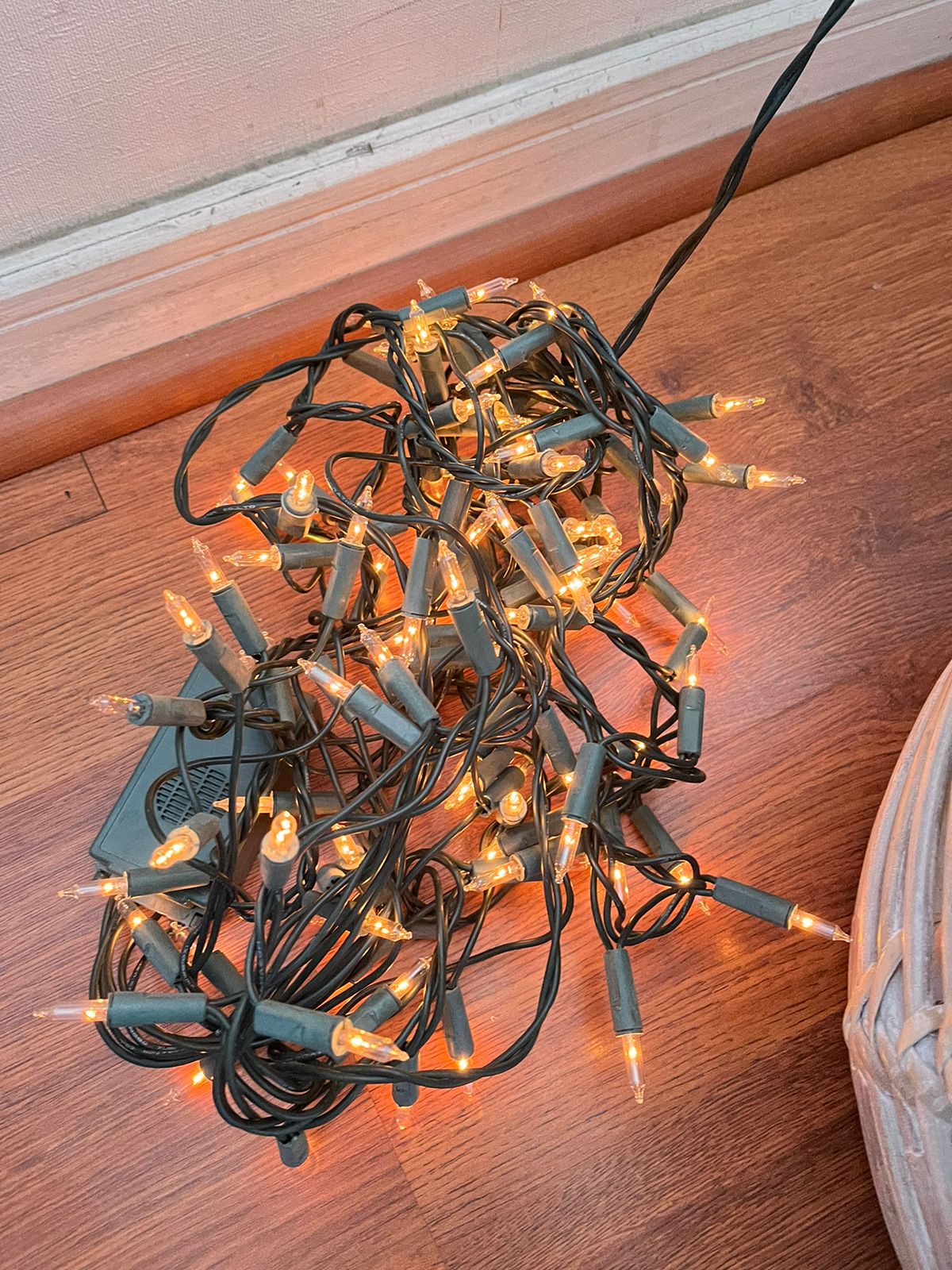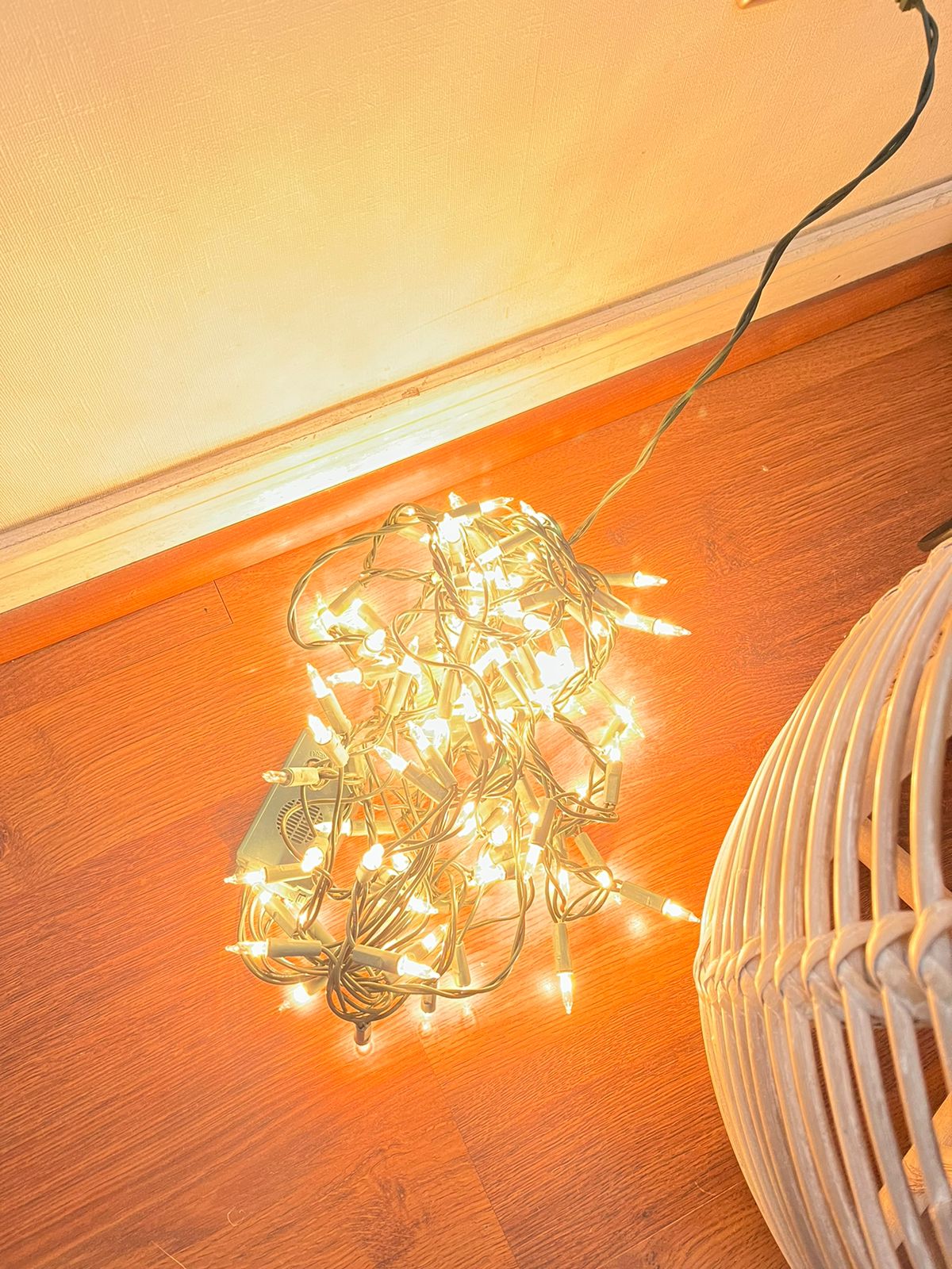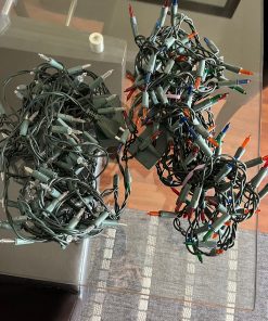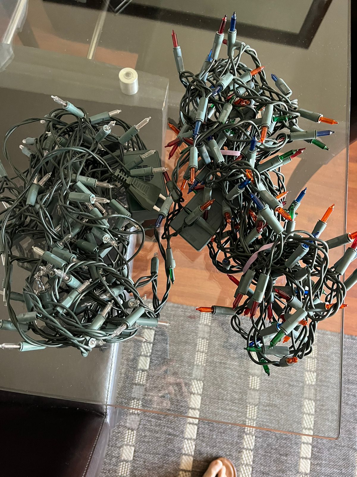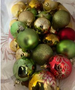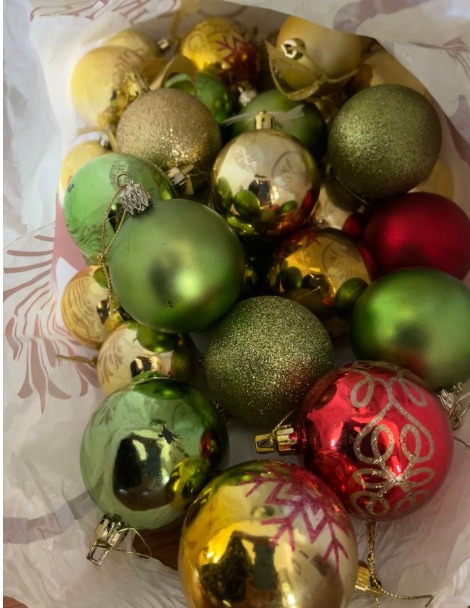 Decoración: esferas, juego de luces colores y juego de luces amarillas, ambas con opción de música