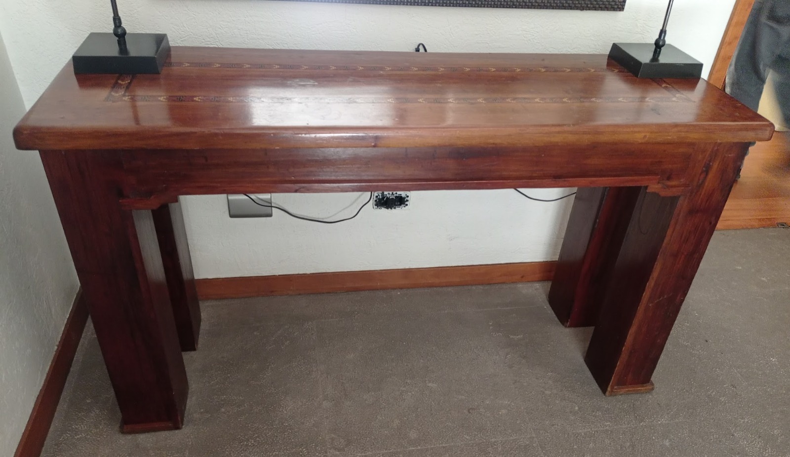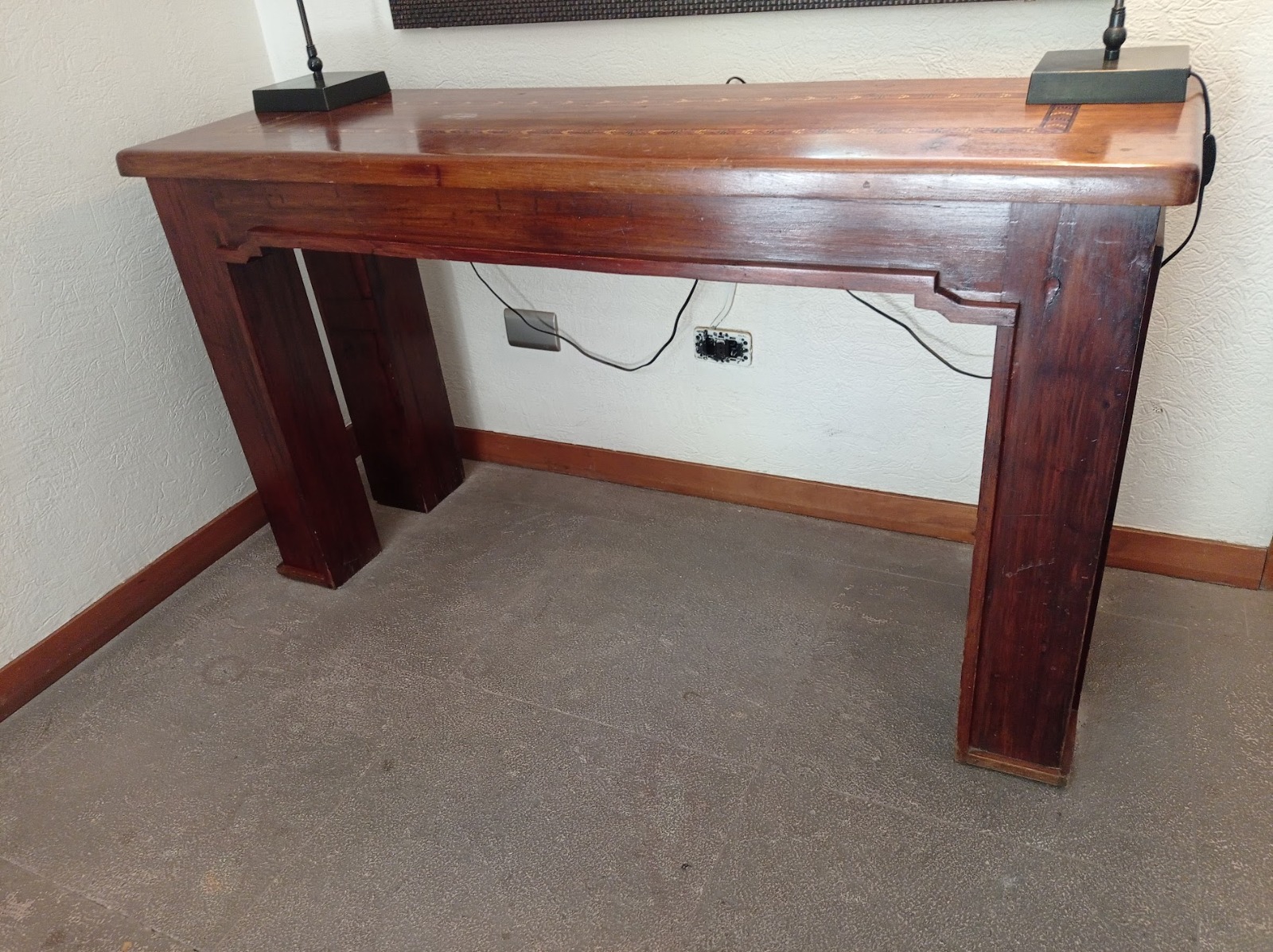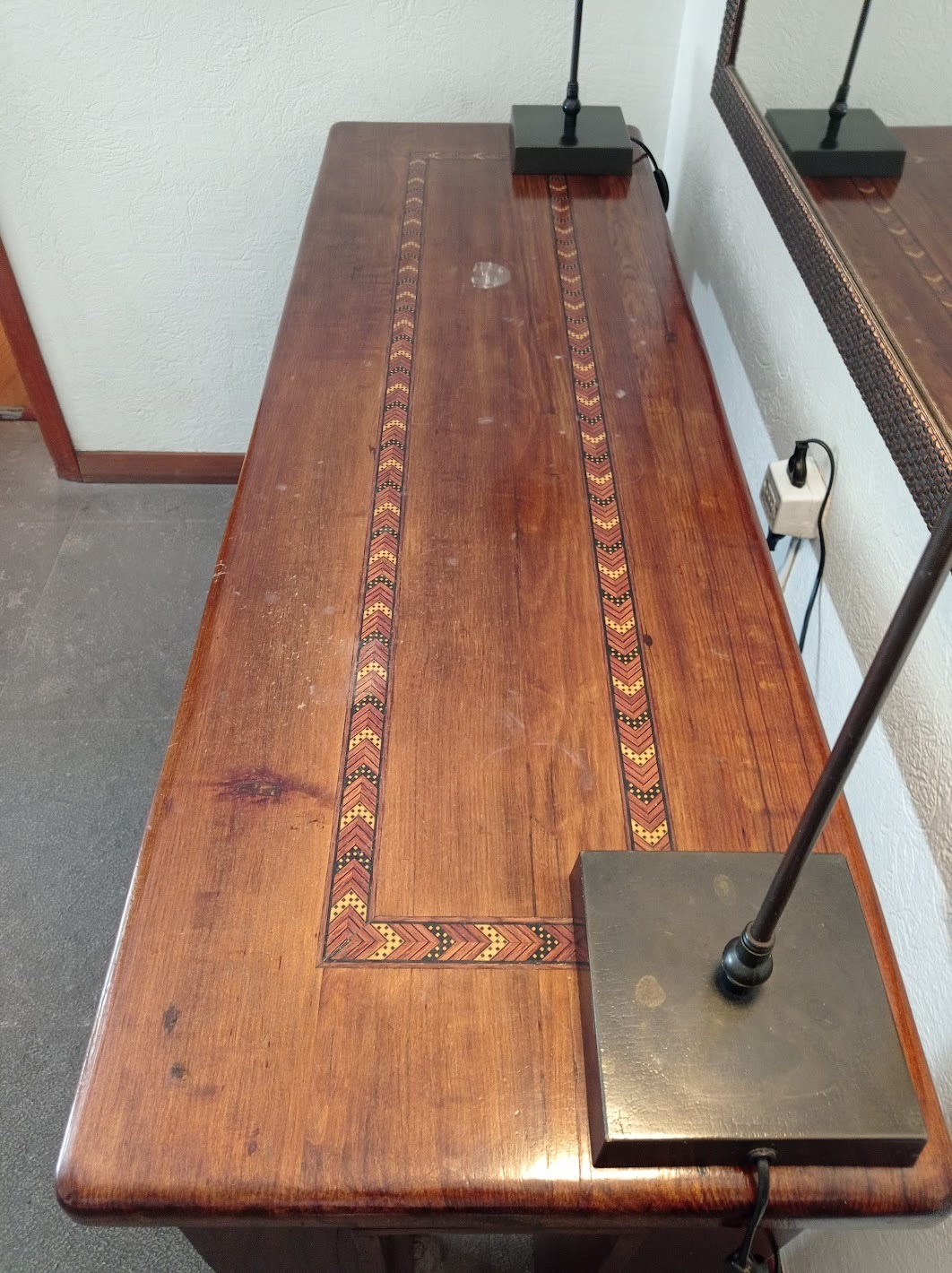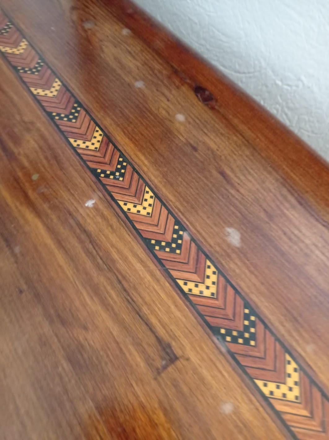 Arrimo madera maciza con marquetería en cubierta