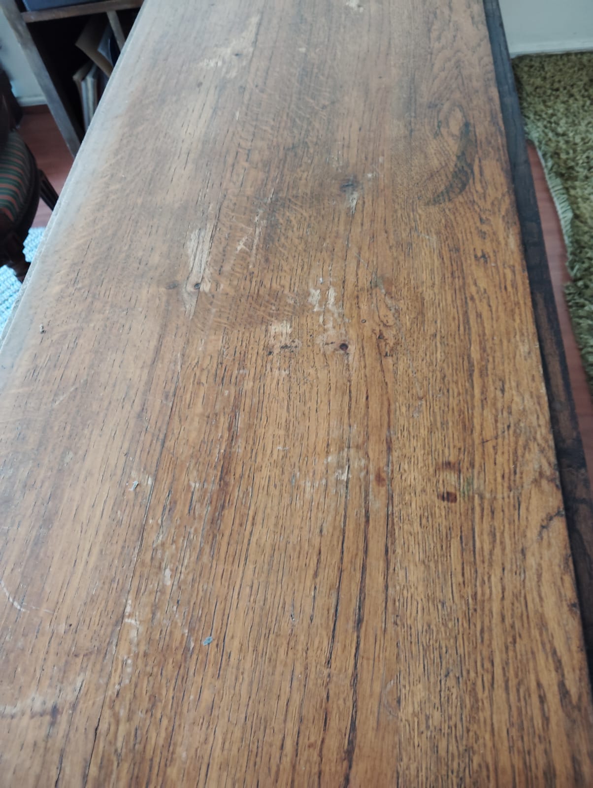 Tiene cajones laterales, detalles de manchas en cubierta y cajón apretado