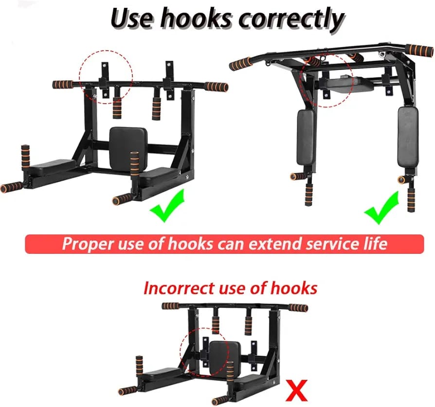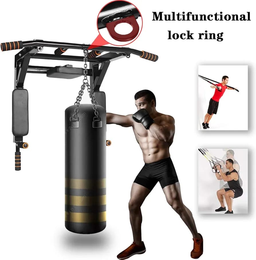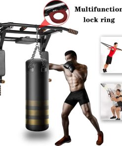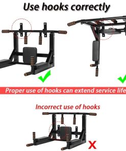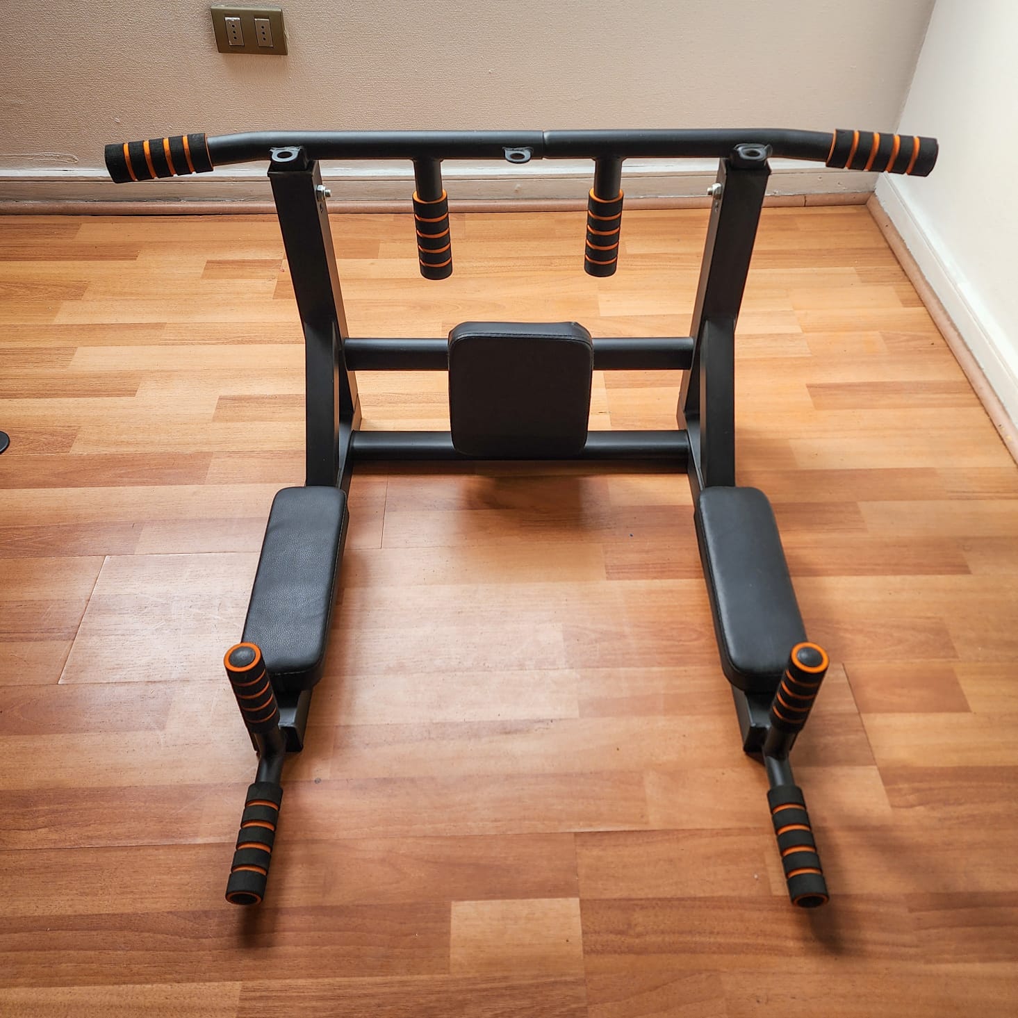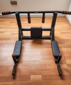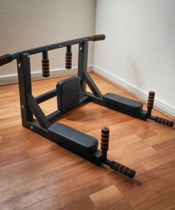 Soporta hasta 200 kg, se pueden hacer pull ups y tiene 4 ganchos para instalar sacos y bandas