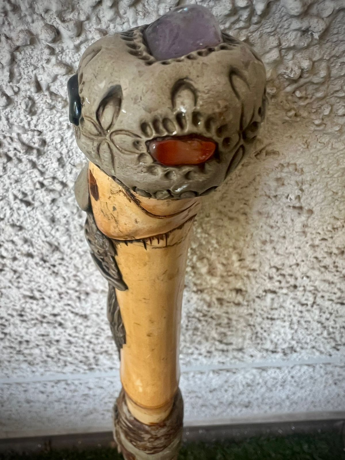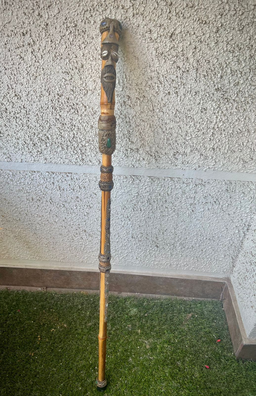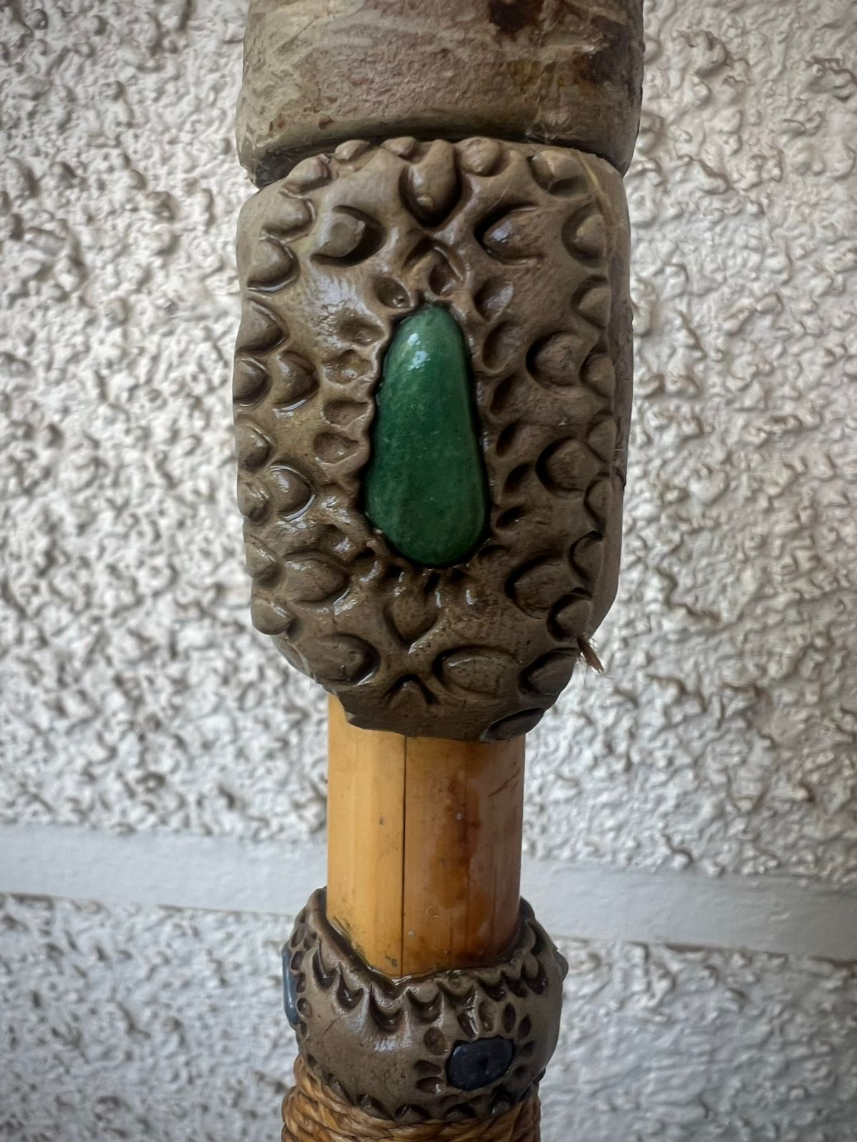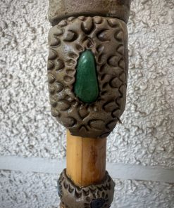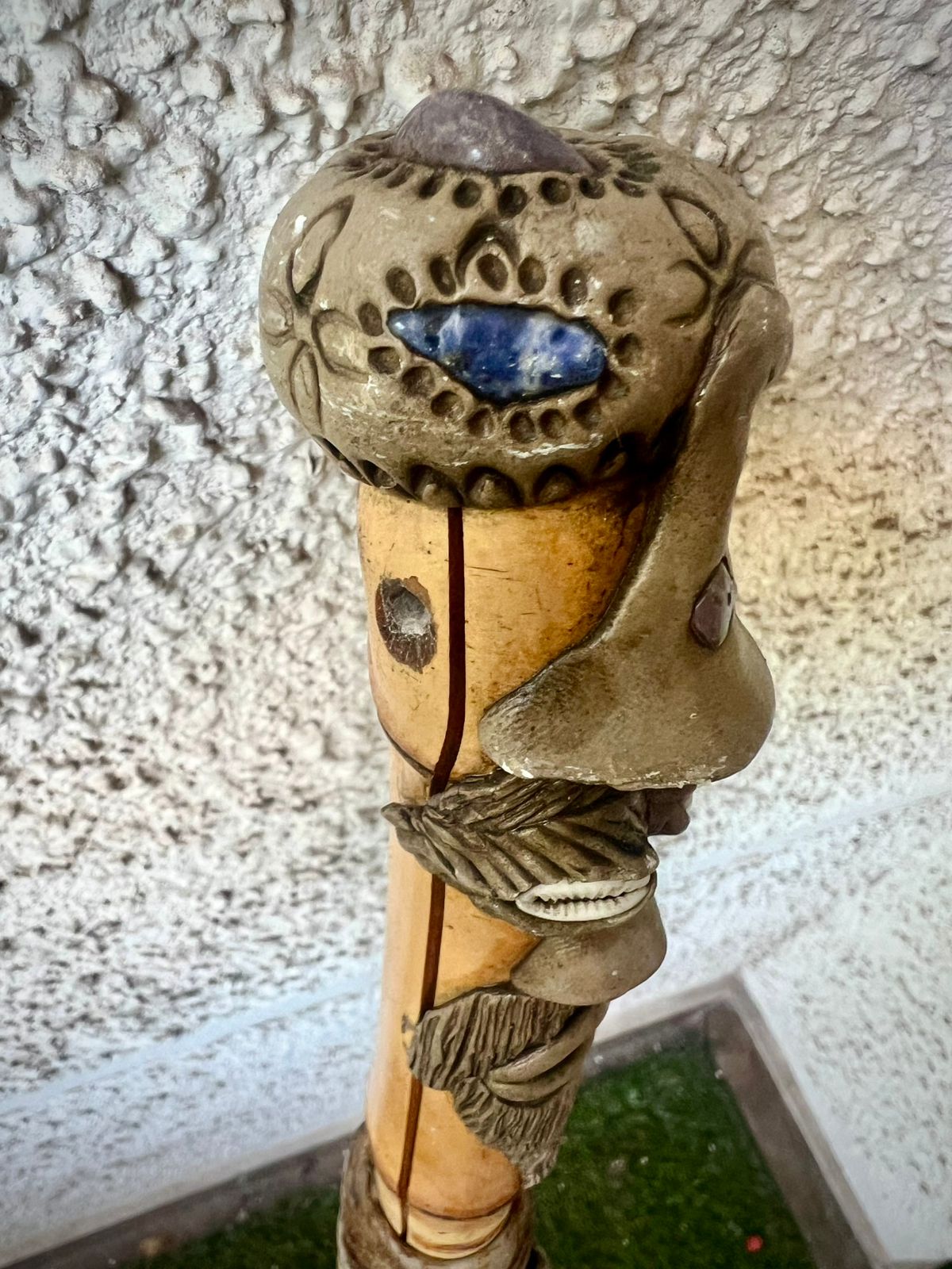 Madera bambú con incrustaciones cuero, piedras semi preciosas, conchas