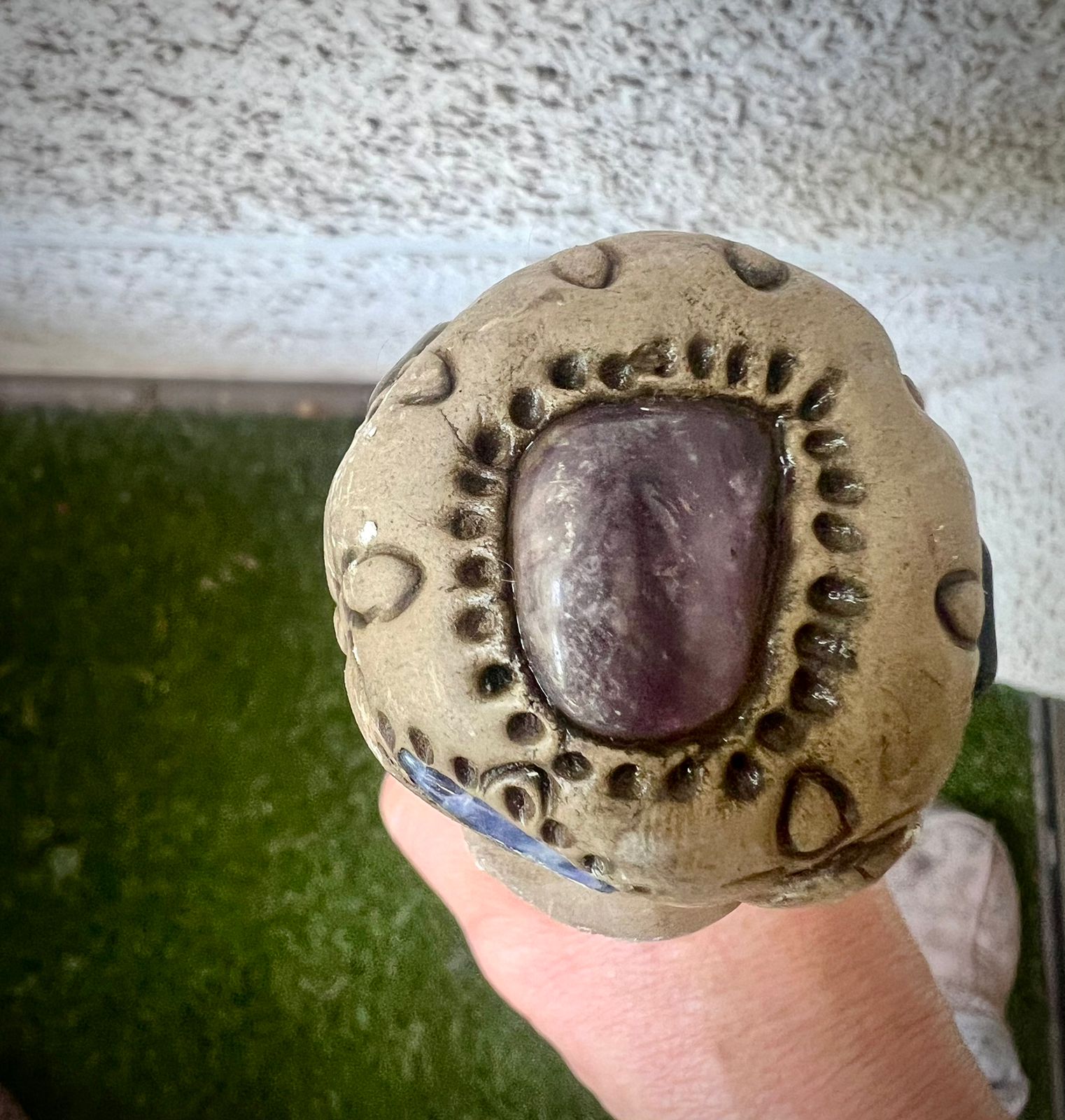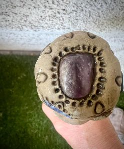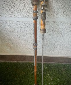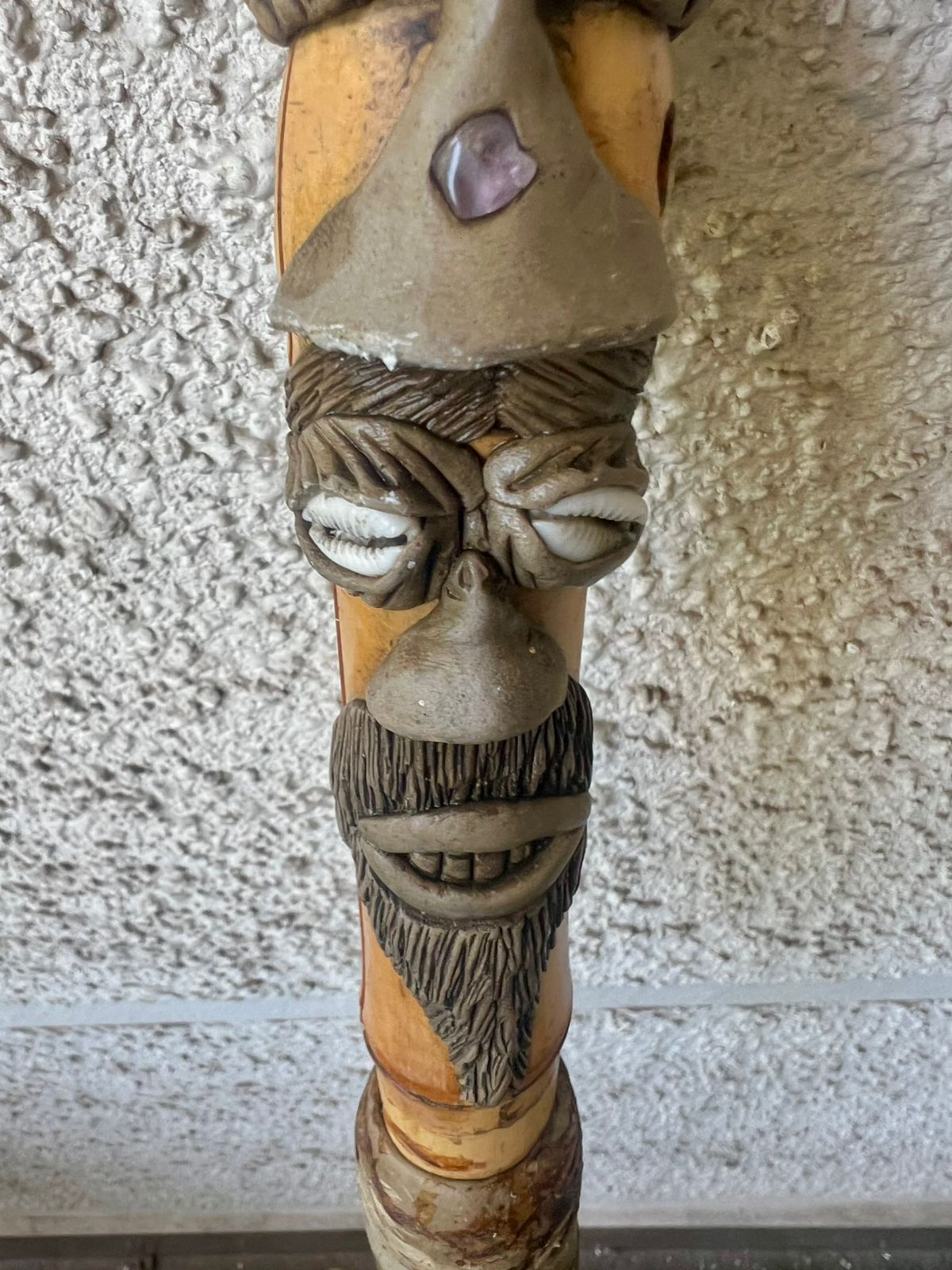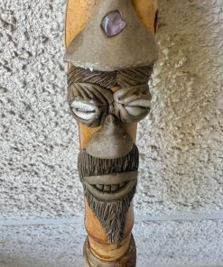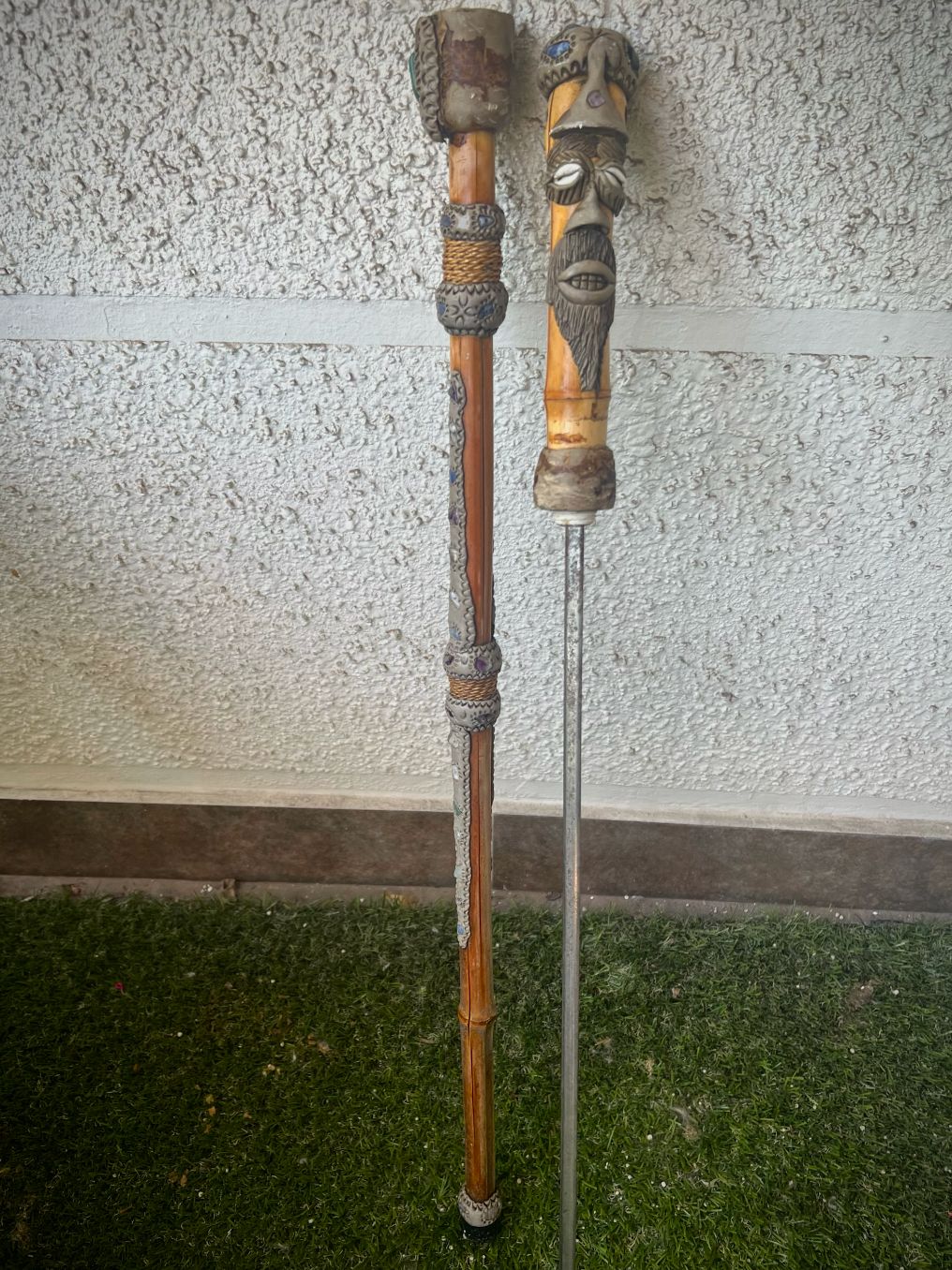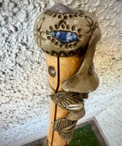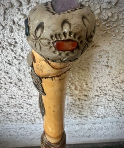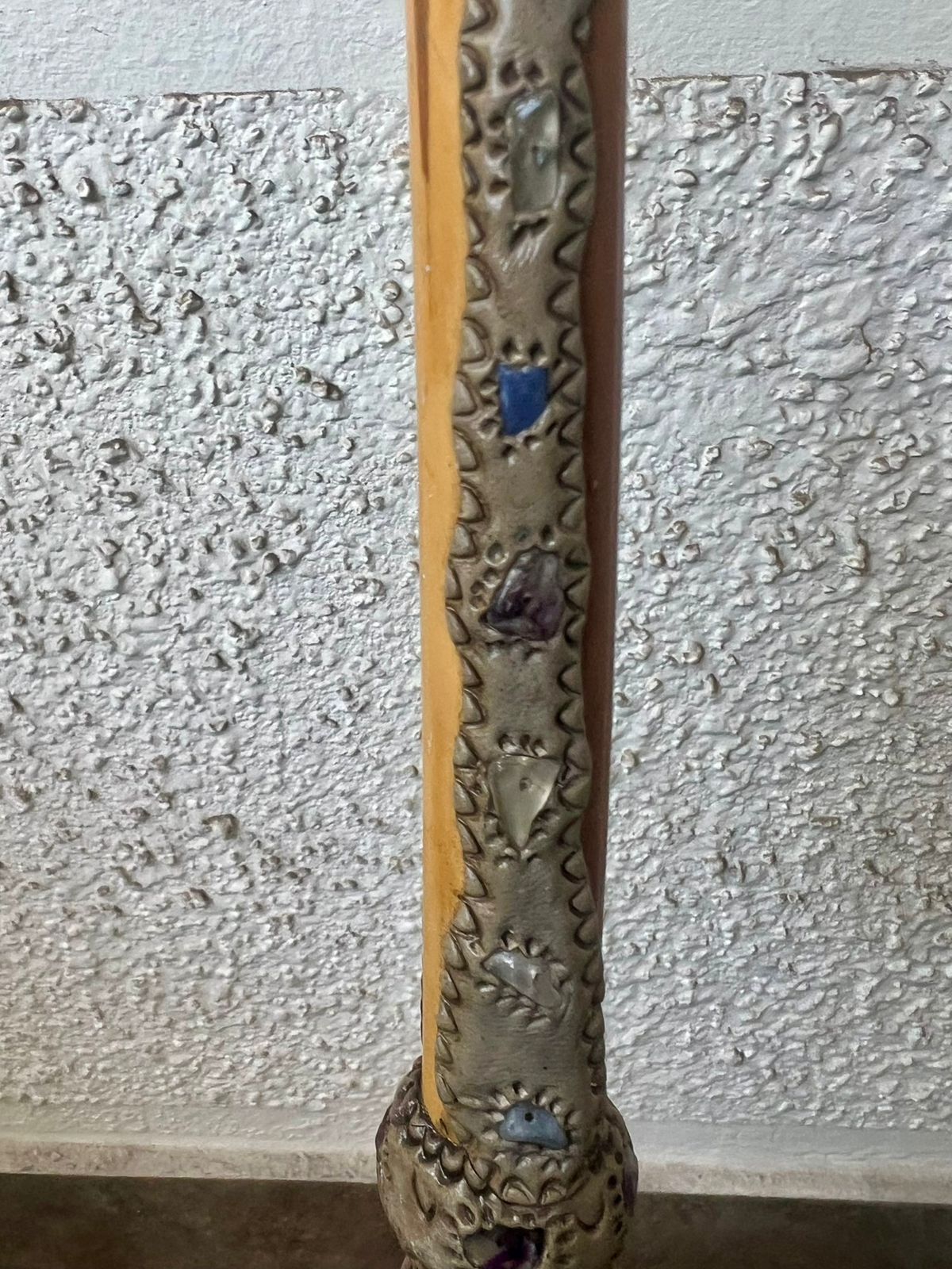 Madera bambú con incrustaciones cuero, piedras semi preciosas, conchas