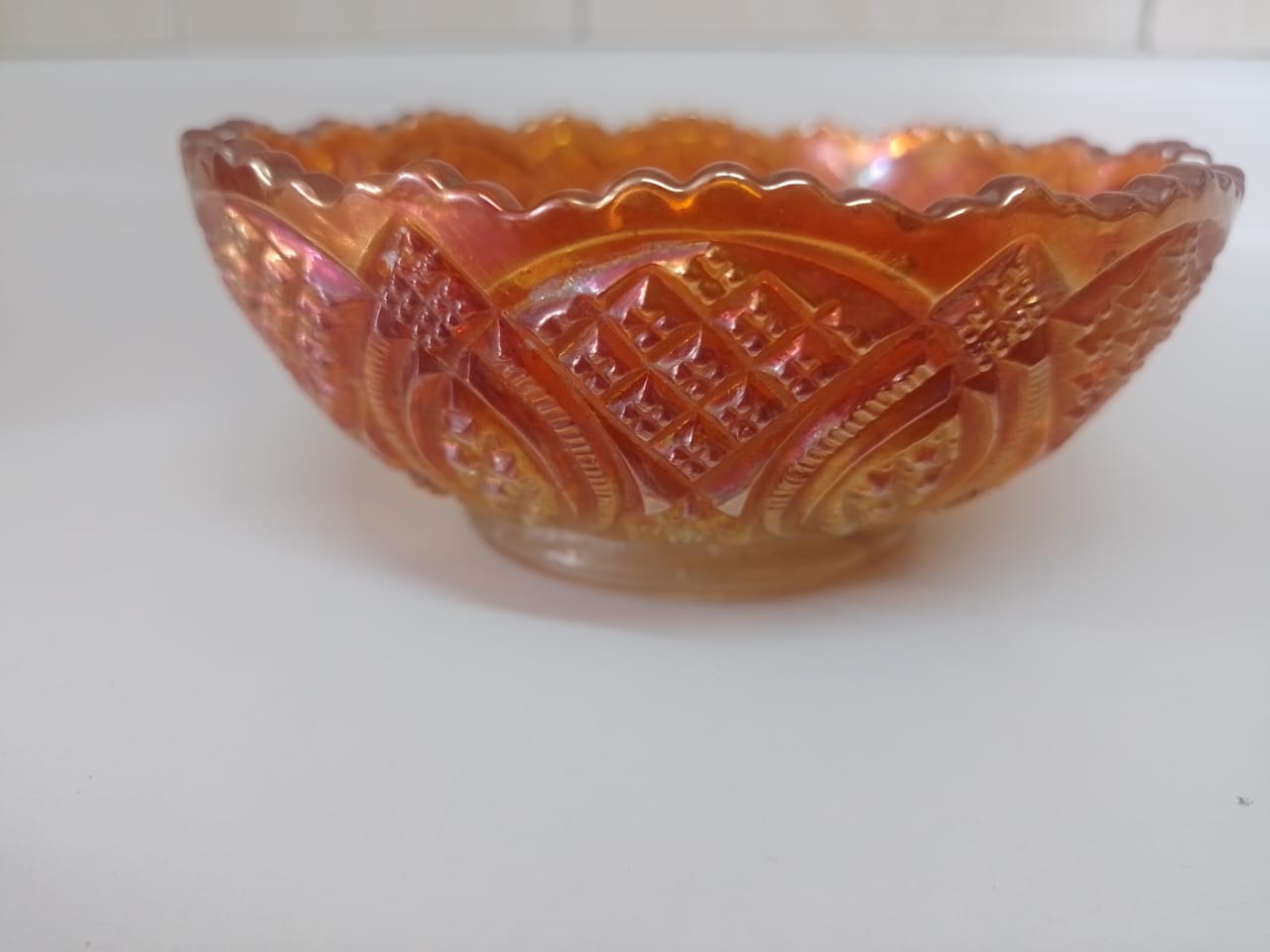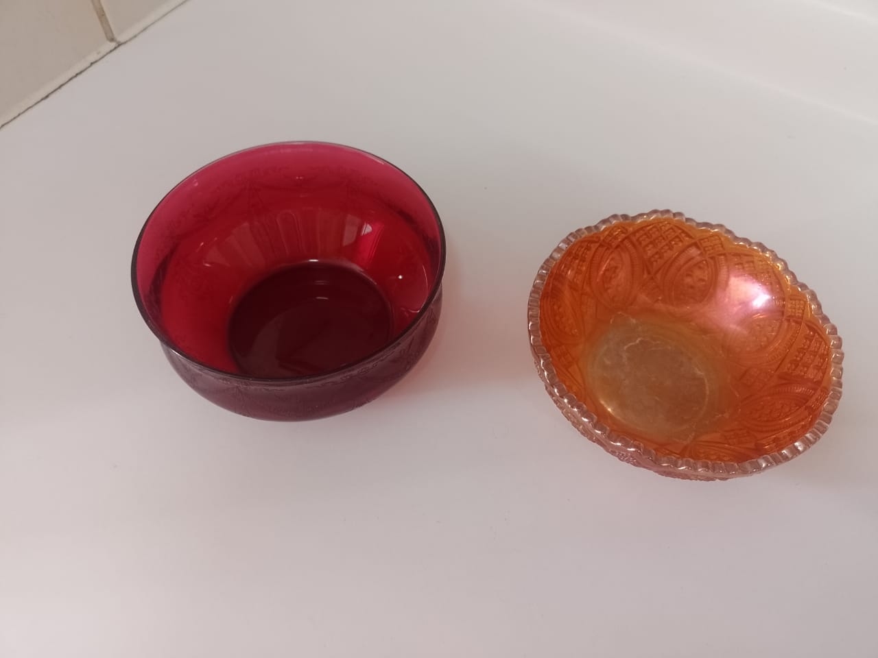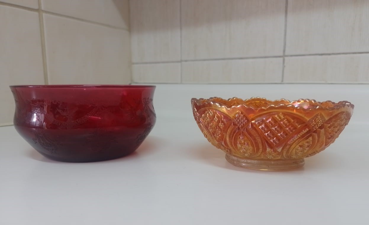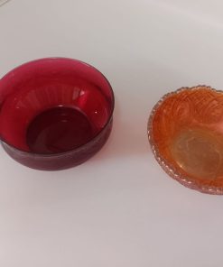 Uno de cristal rojo tallado y otro de vidrio naranja tallado Carnival Glass