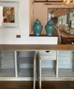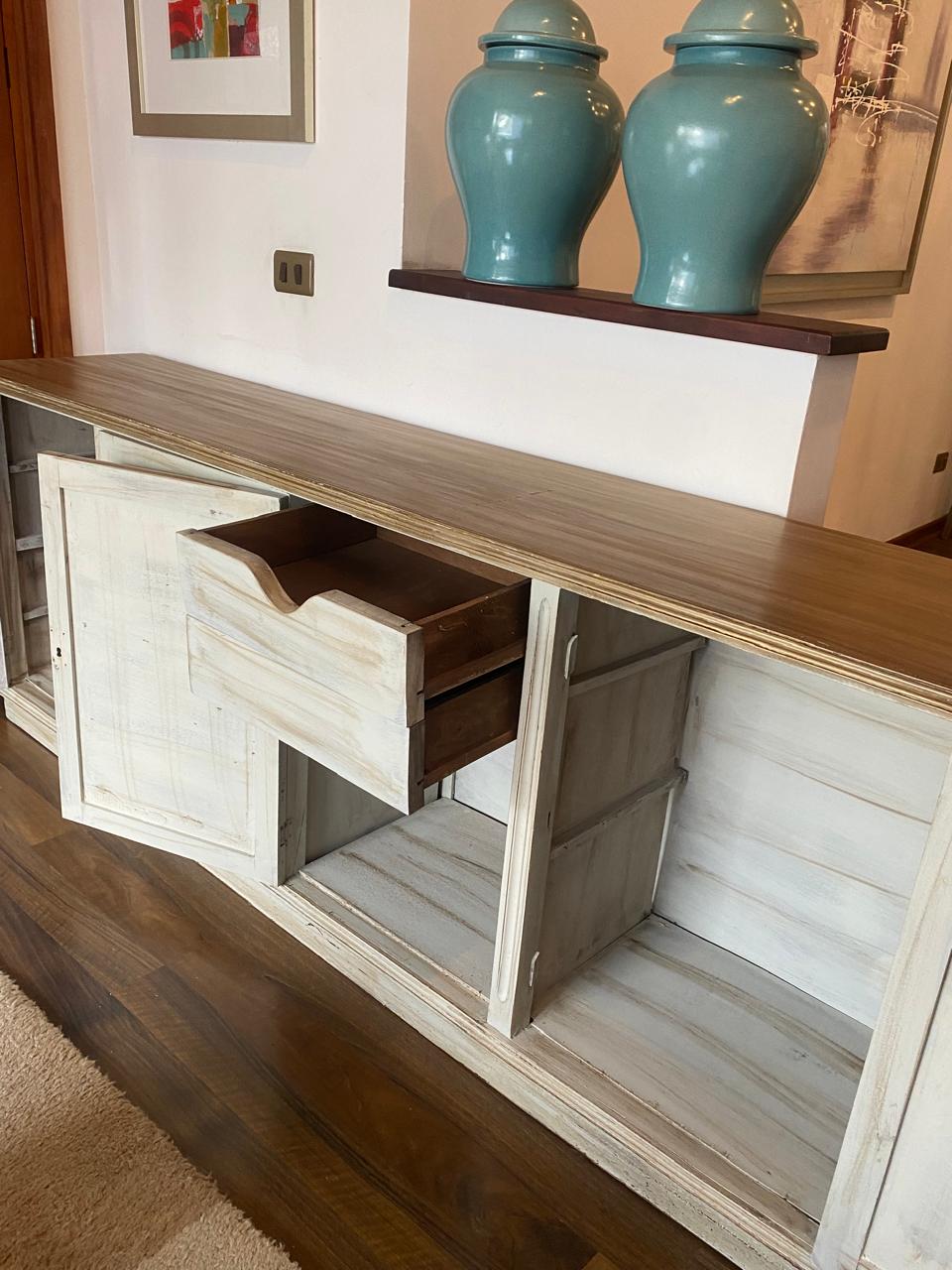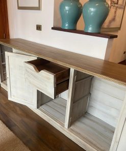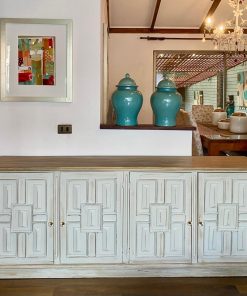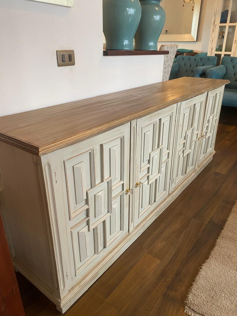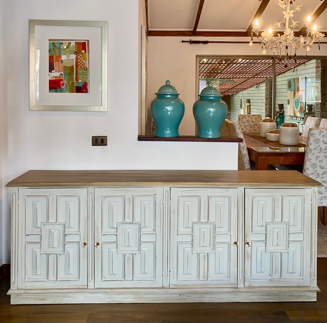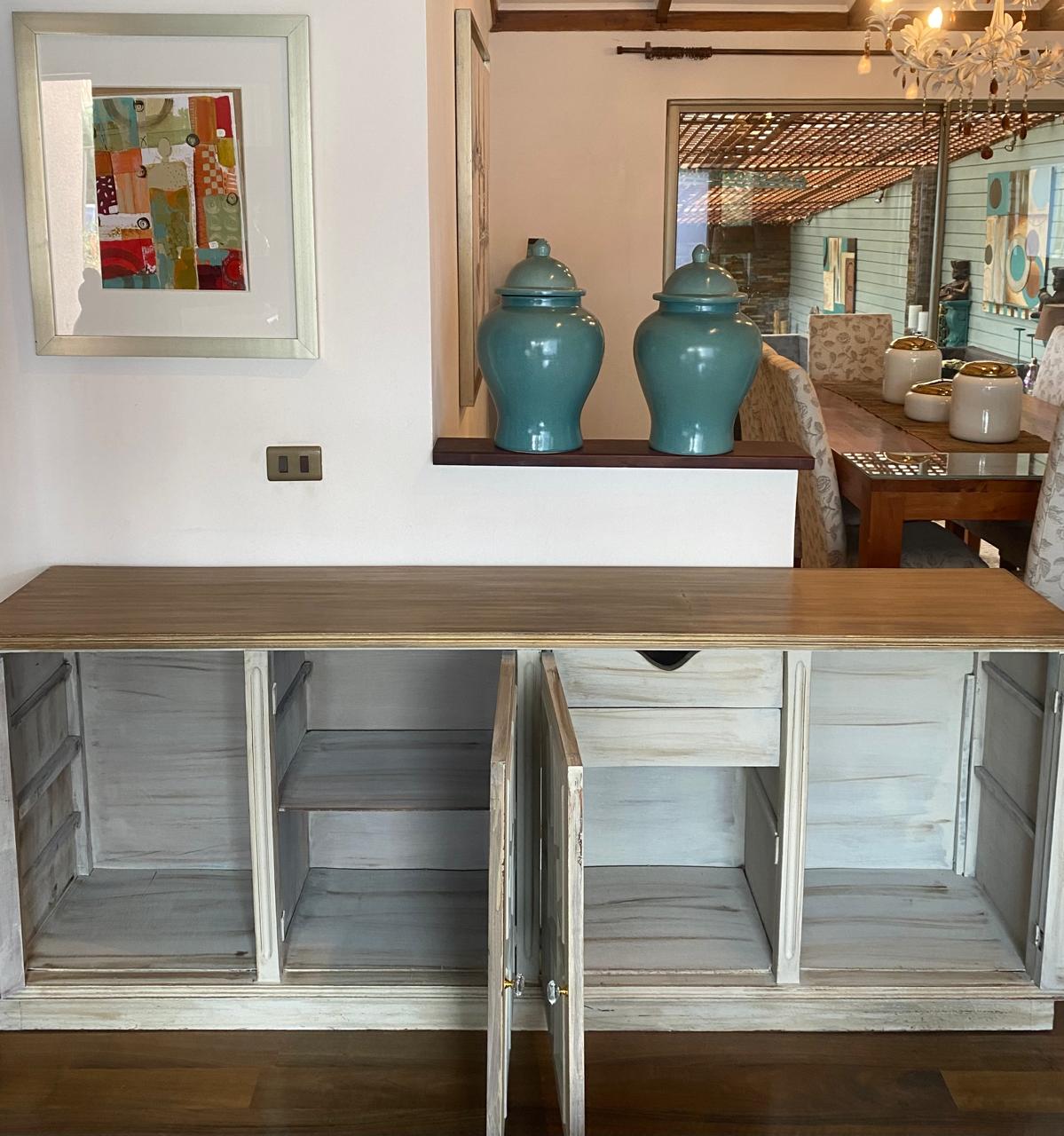 Color blanco arena tiza decapado con tiradores dorados de cristal
