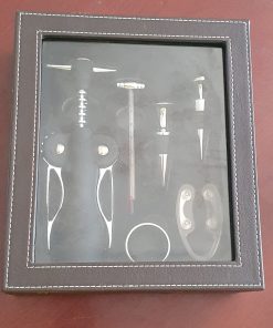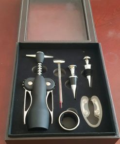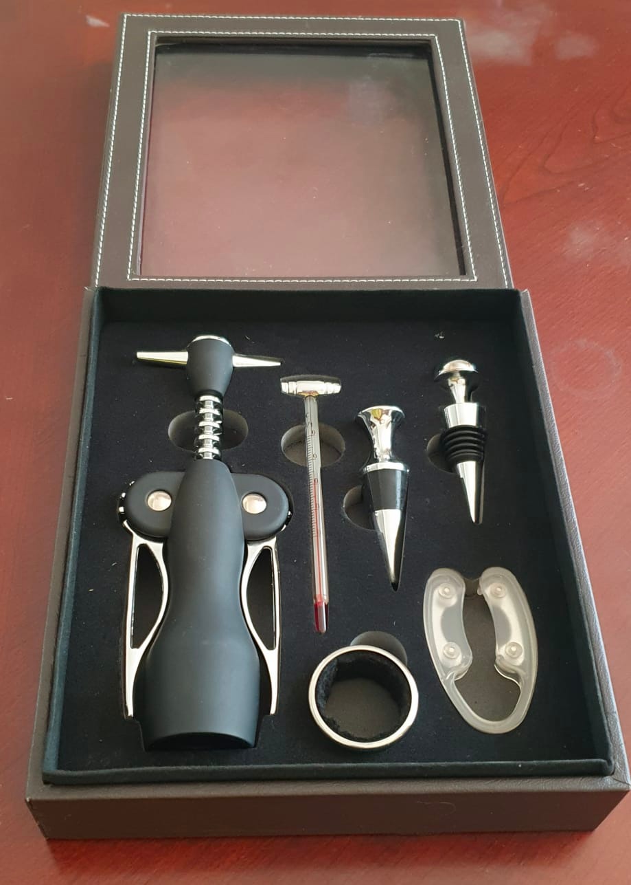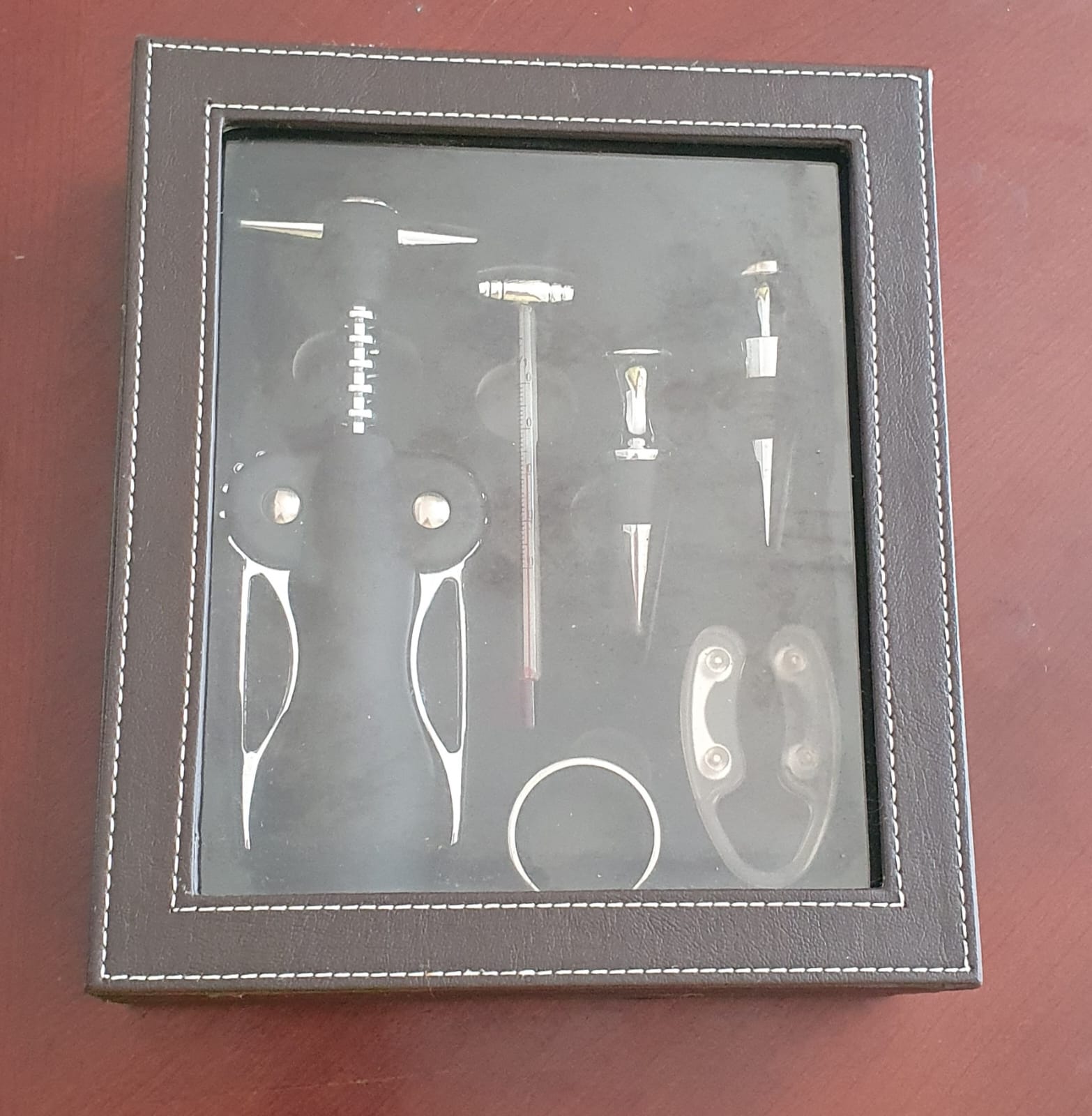 Etiquetas: accesorios para vino, accesorios para vino nuevos, Caja de cuero sintético con accesorios para vino