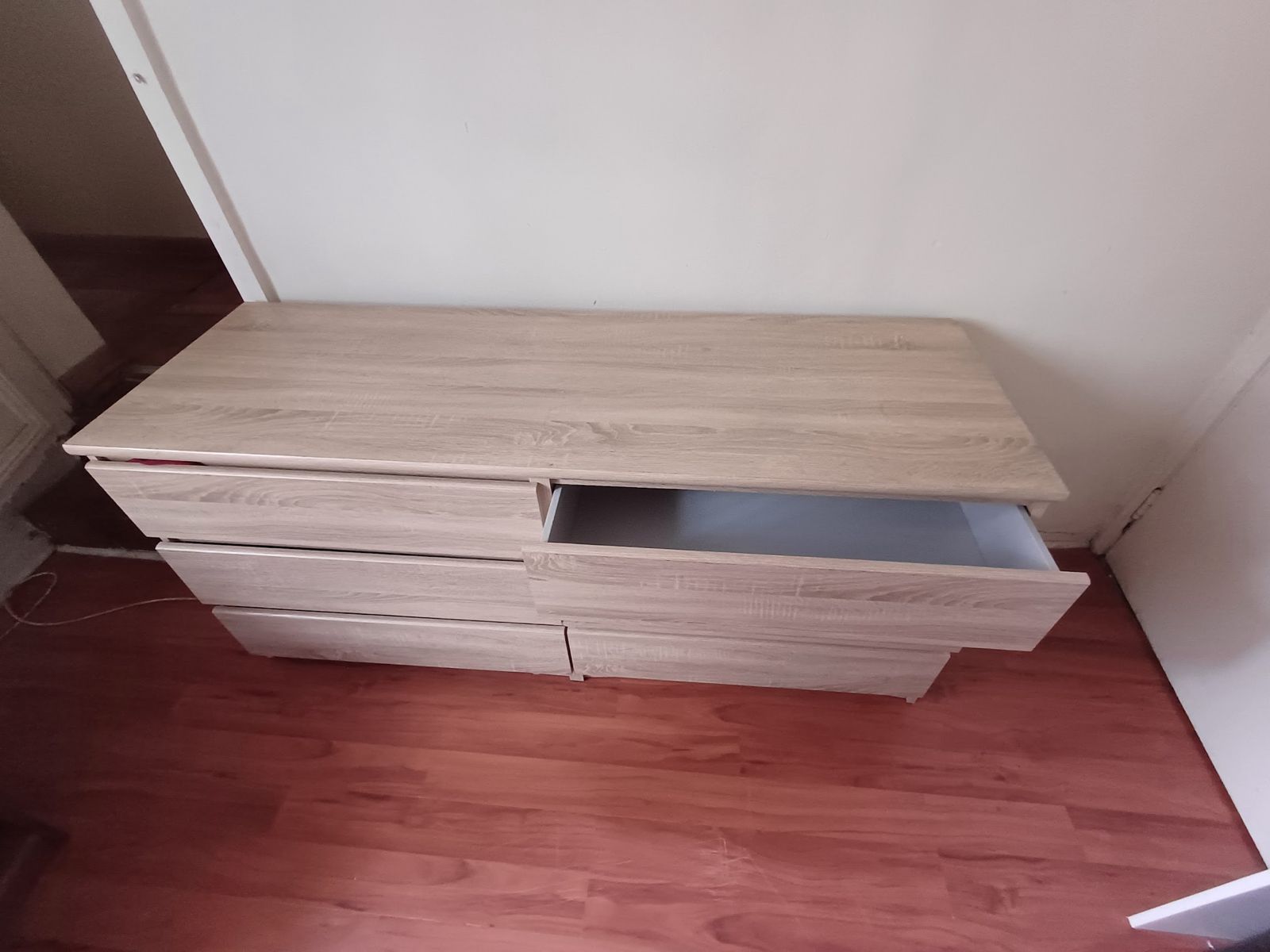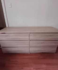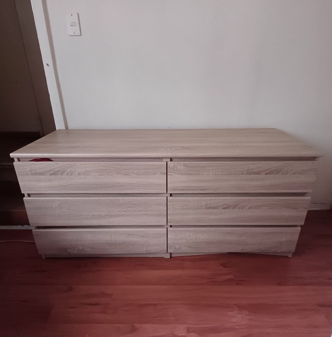 Tiene dos rayas pequeñas en la parte de arriba y roto en base abajo, no afecta uso. Los cajones funcionan bien.
