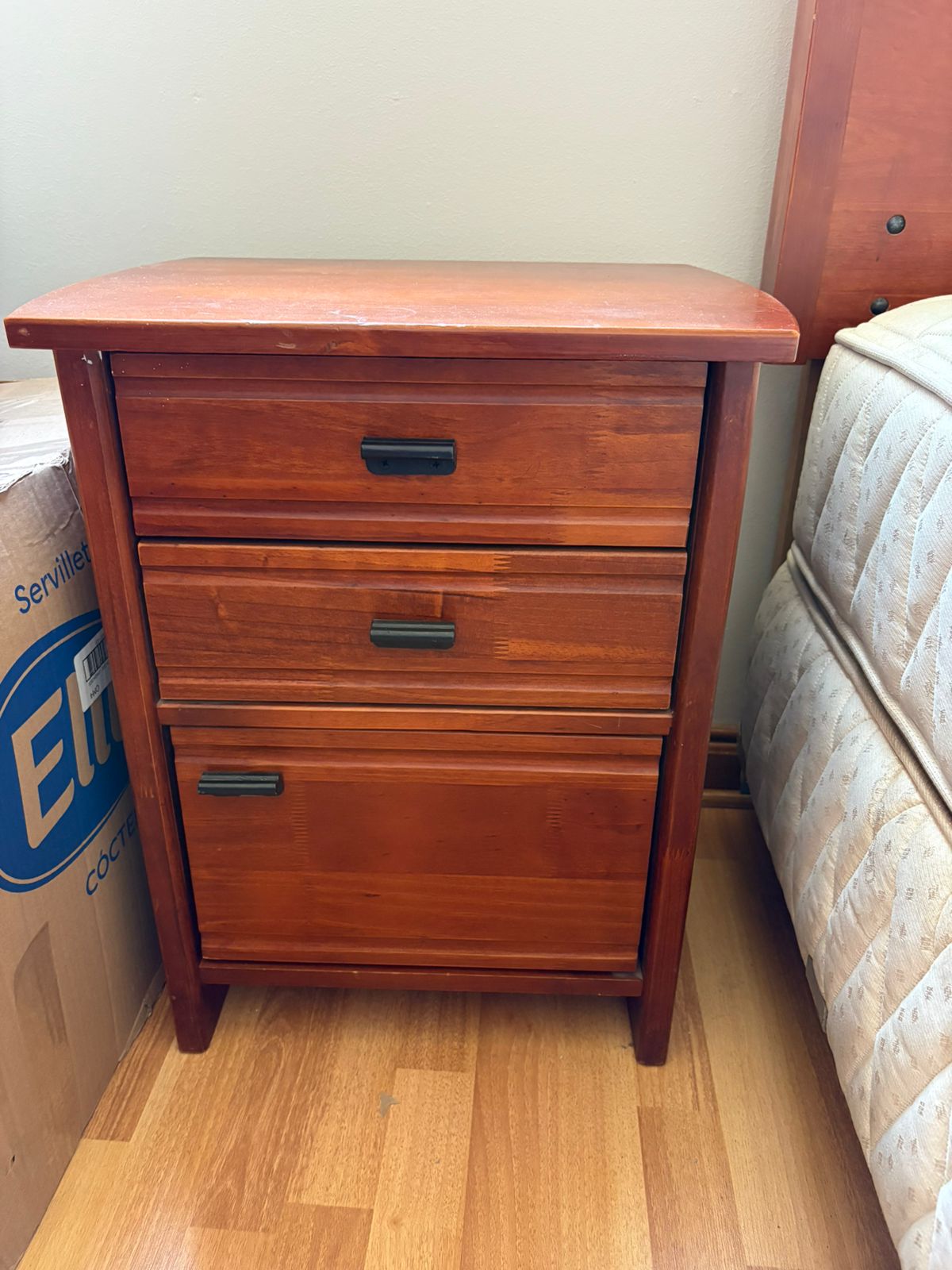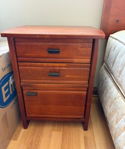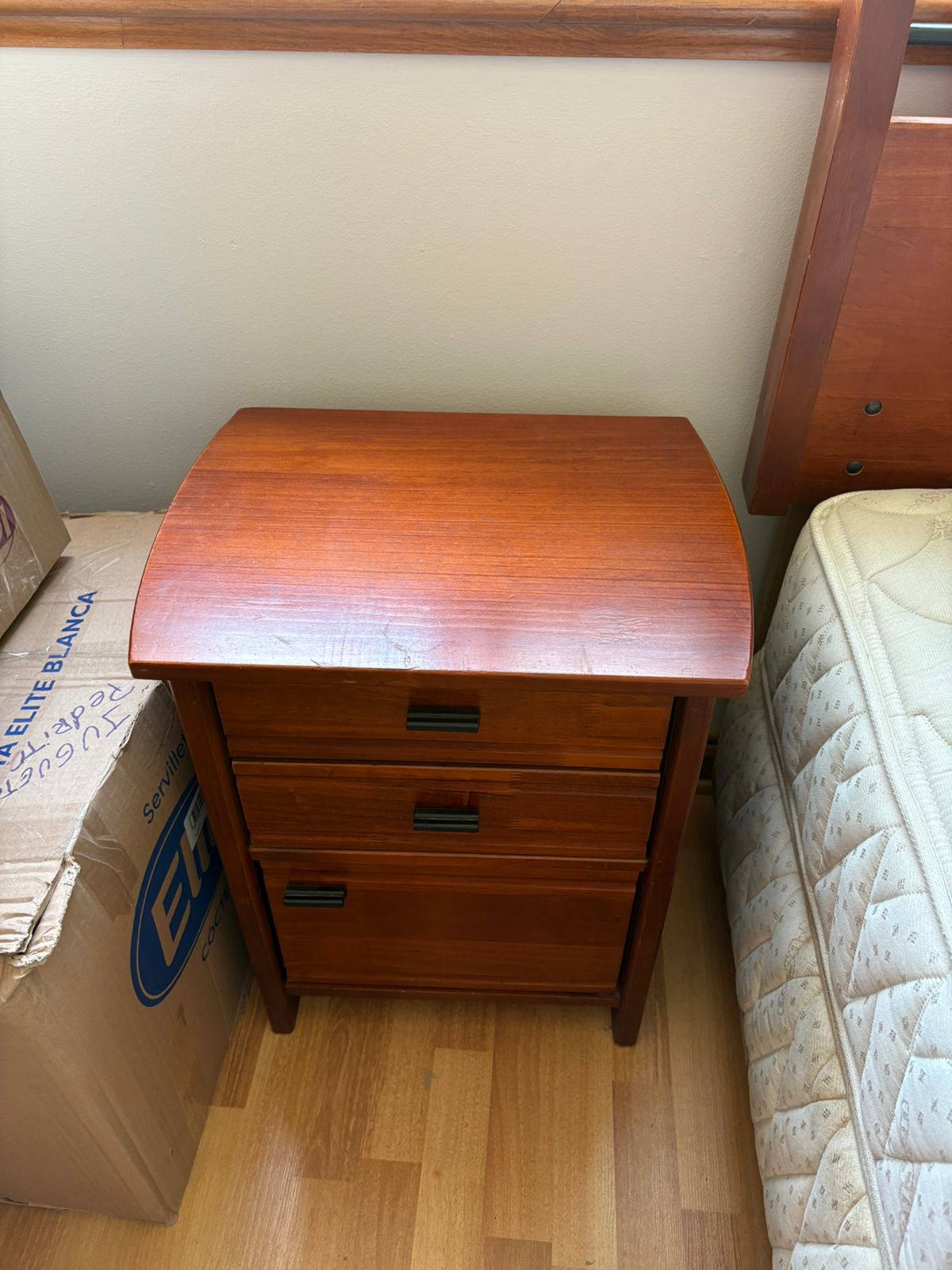 Medidas: respaldo 110×70 cm, velador 50x37x60 cm, cama 105x195x60 cm alto