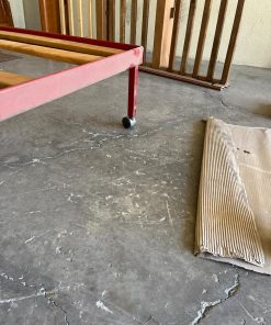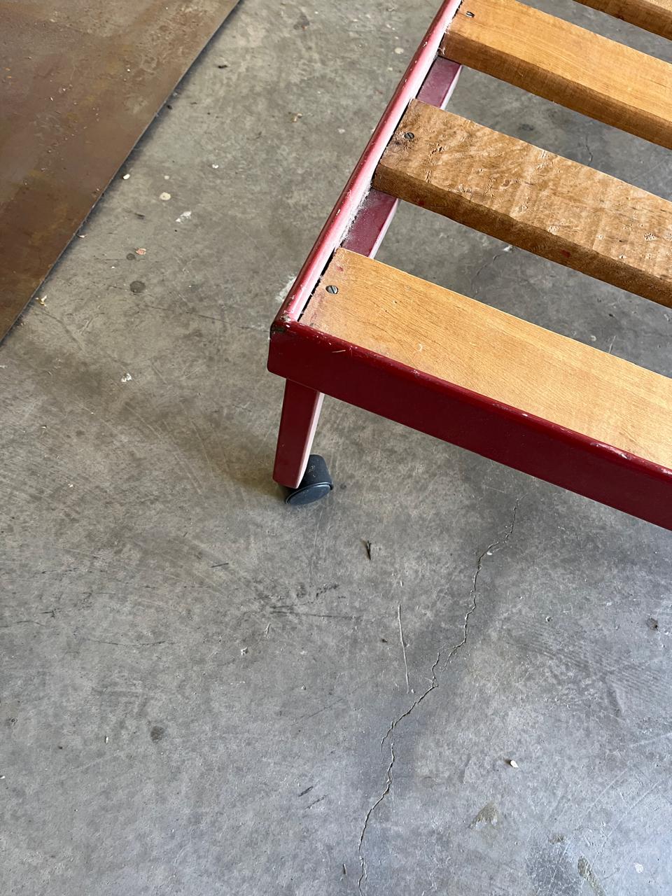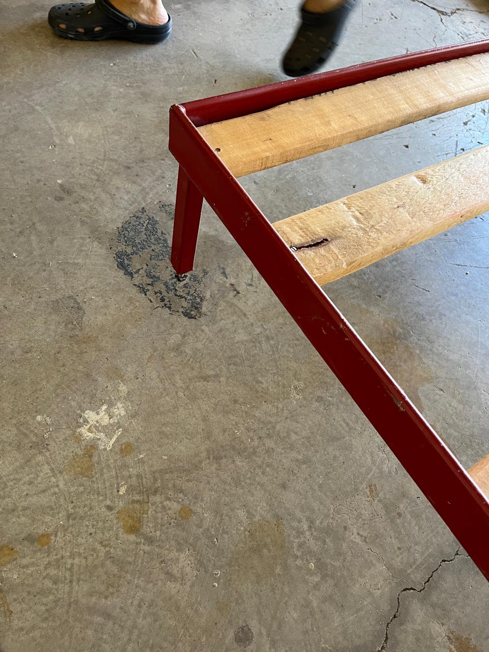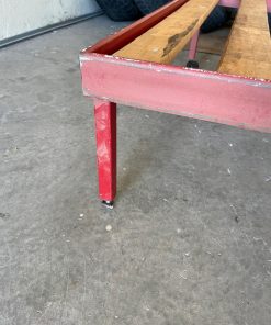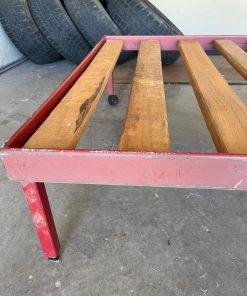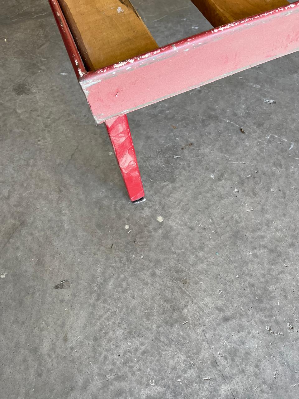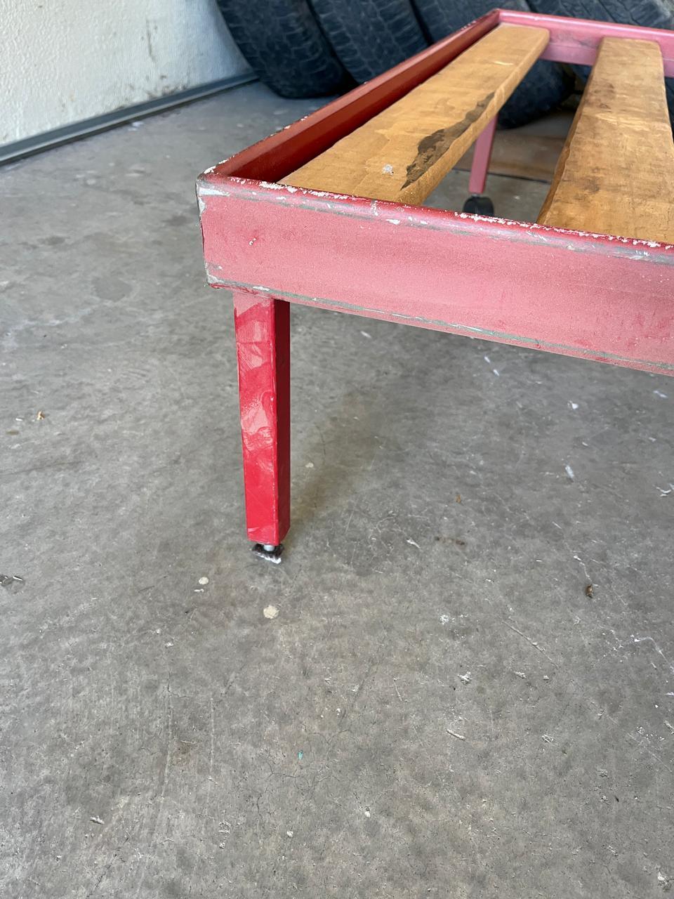 Detalle le falta una rueda y una tabla. Requiere pintura