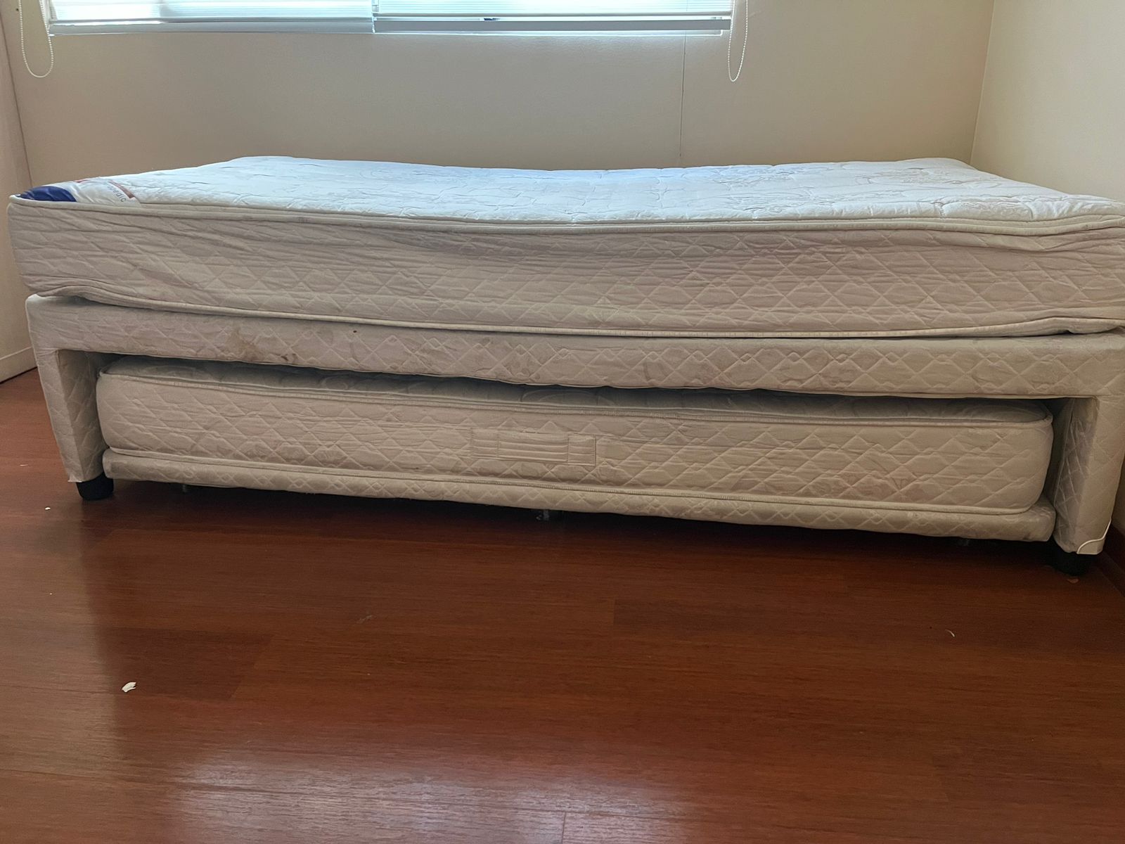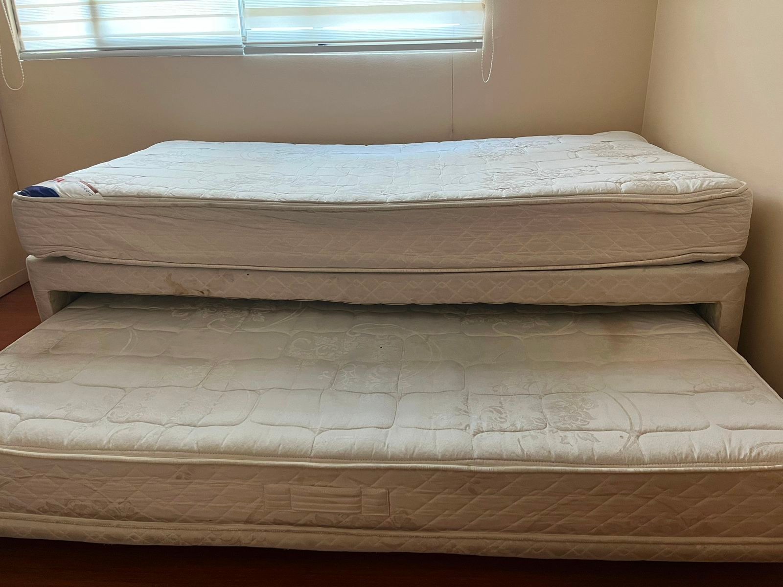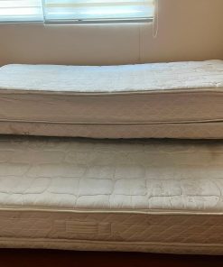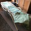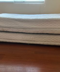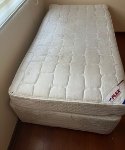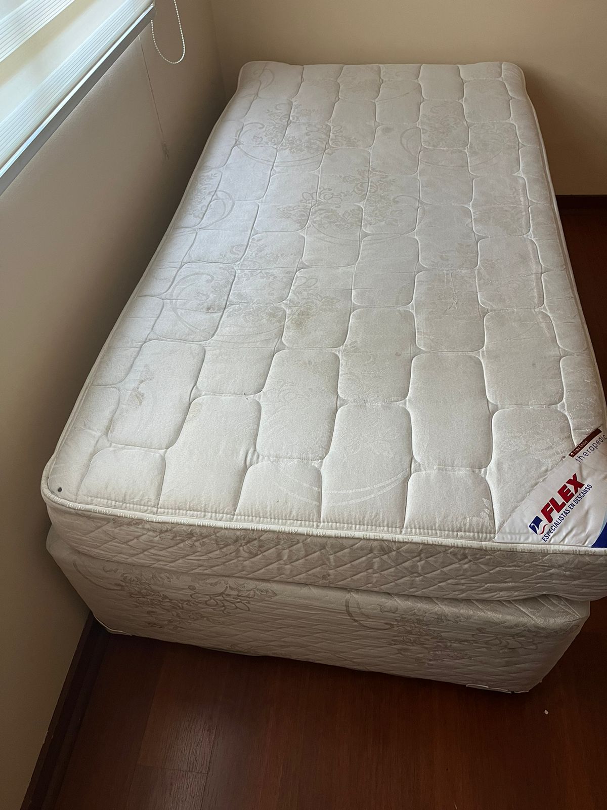 Detalles de manchas en la base y en los colchones, desgaste en el centro