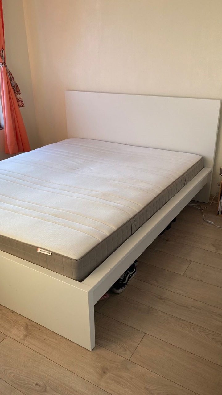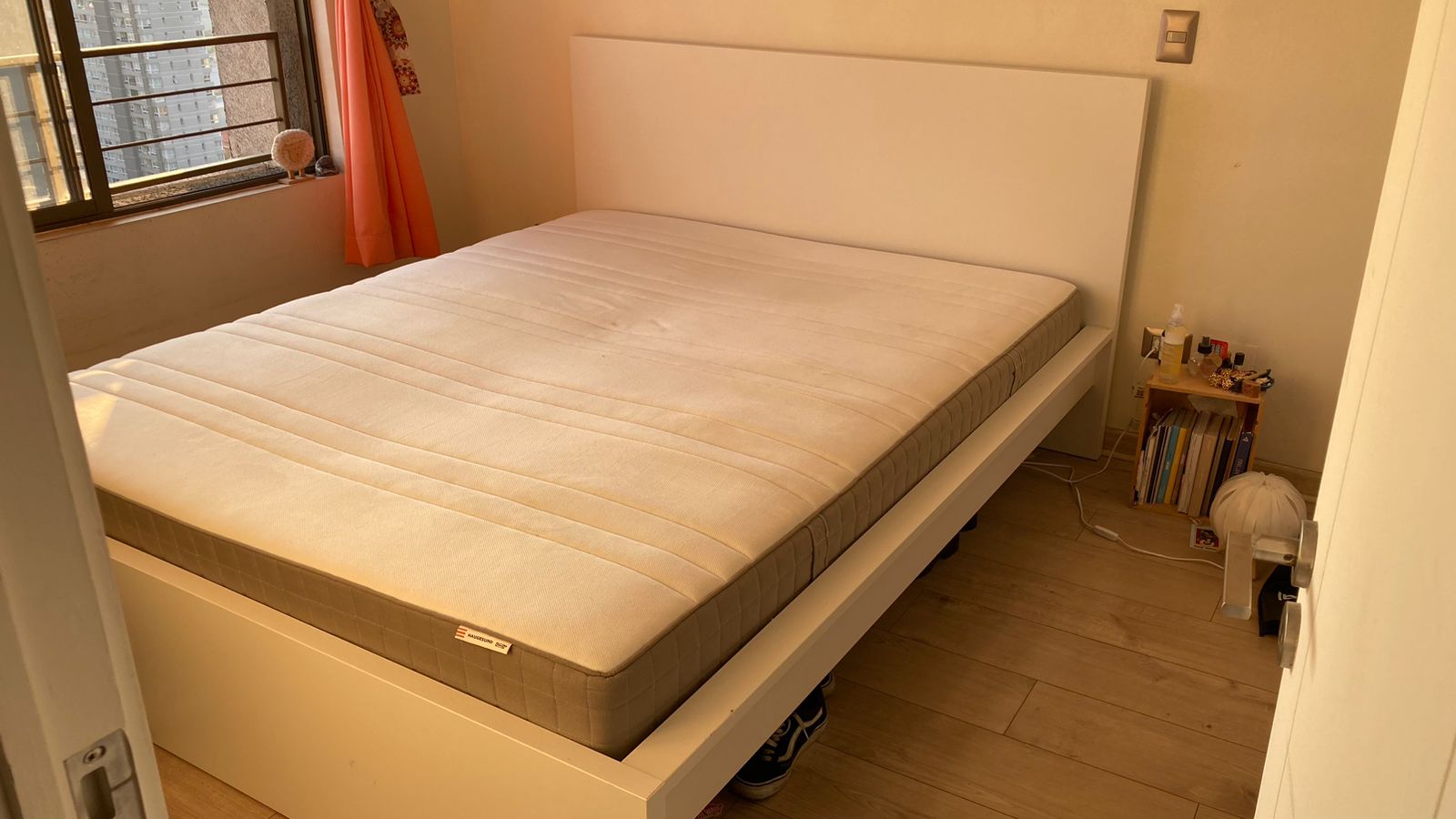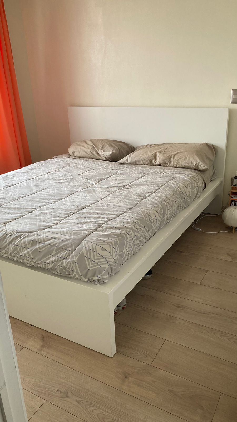 Incluye colchón y somier, se pueden comprar cajones aparte para la base. Detalle de picadura en una parte