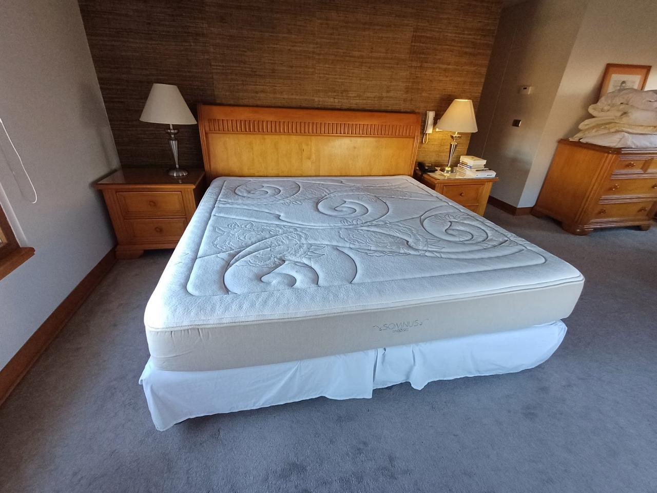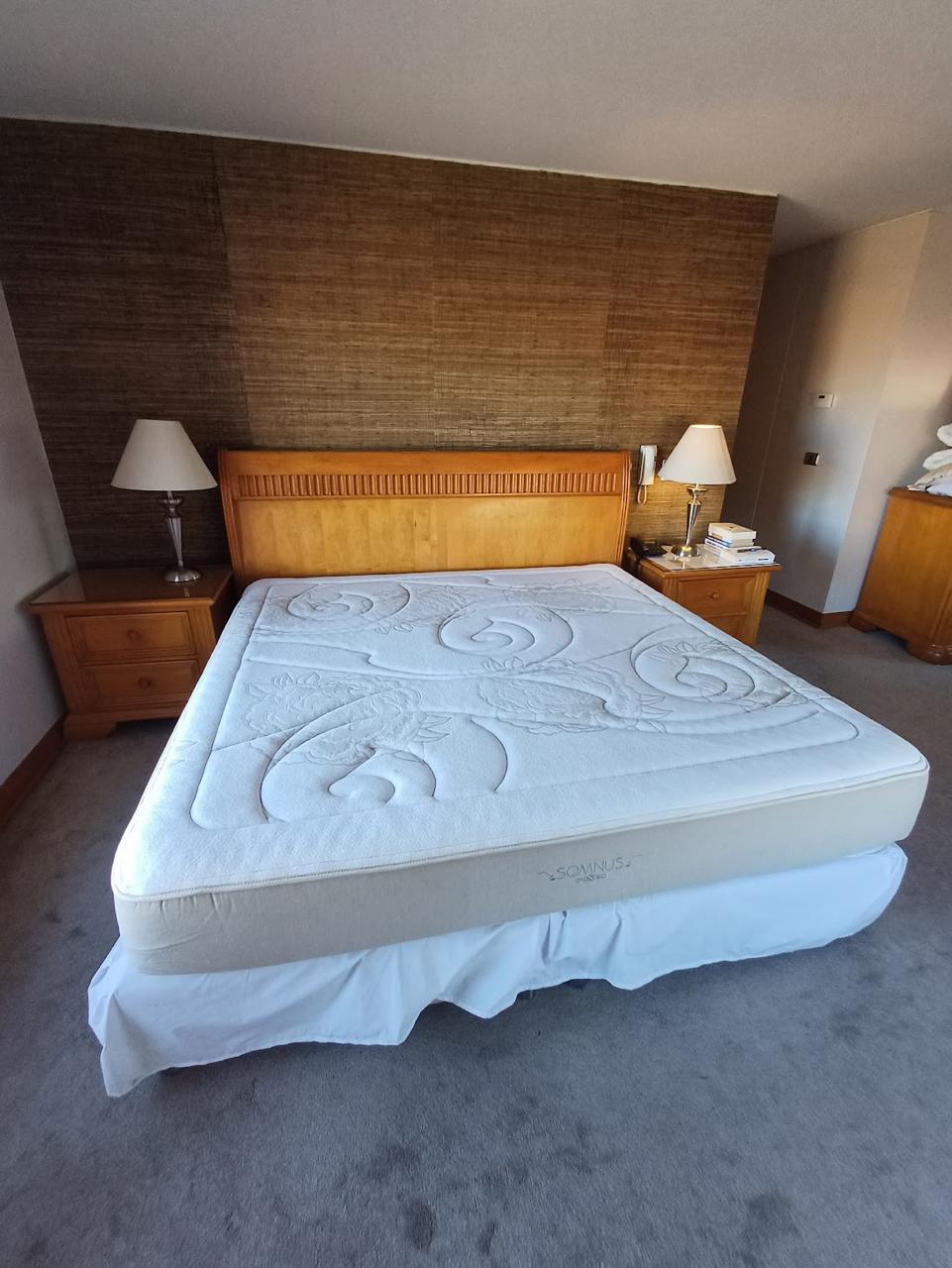 Cama superking con respaldo de madera y colchón Rosen Somnus.