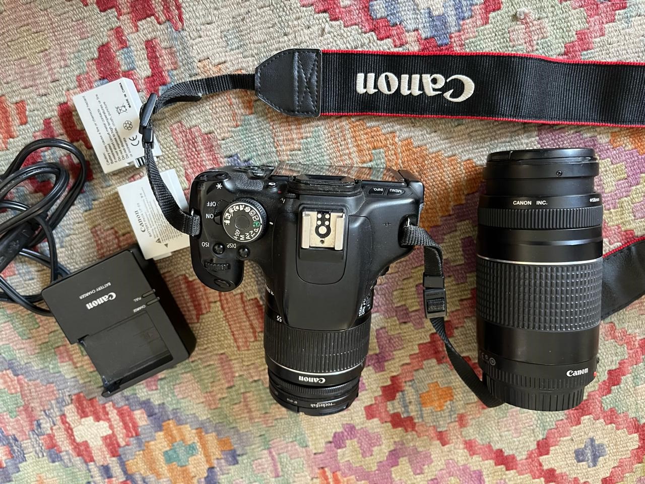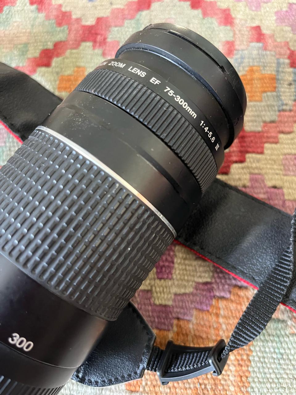 Incluye lentes 18-55 mm y 75-300 mm, con cargador, baterías y bolso