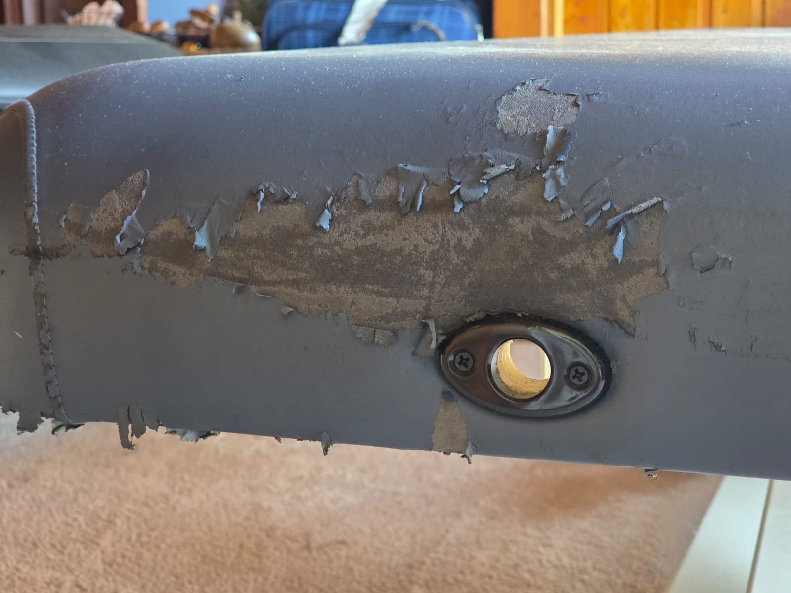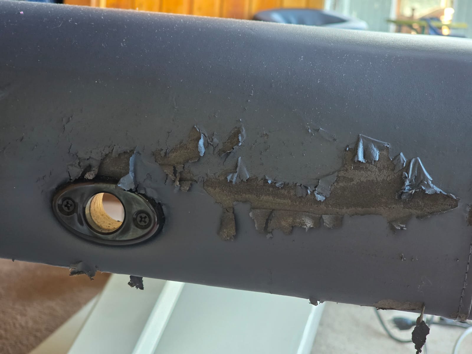 Detalles de desgaste en tapiz en el cabecero, costados y zona inferior