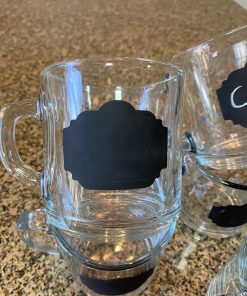 Medidas: coctelera 10×25 cm, copas 6×12 cm y bandeja 30 cm diam