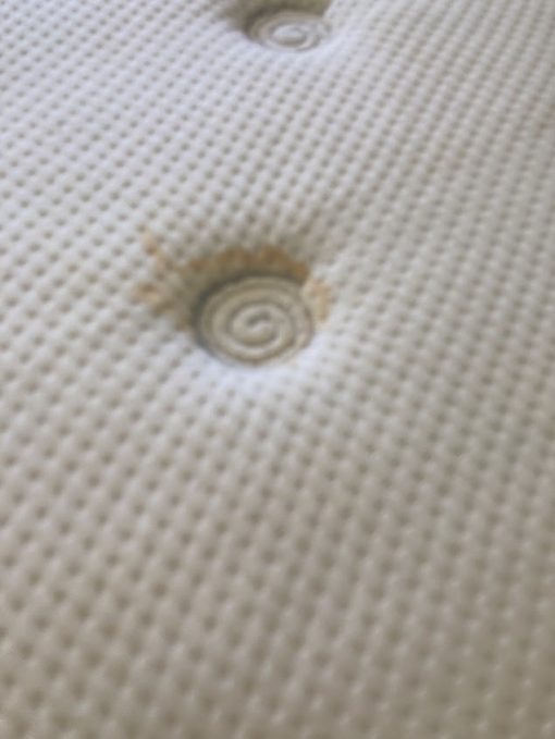 Comprado hace 10 años, algunas manchas y hundido en algunas partes.
