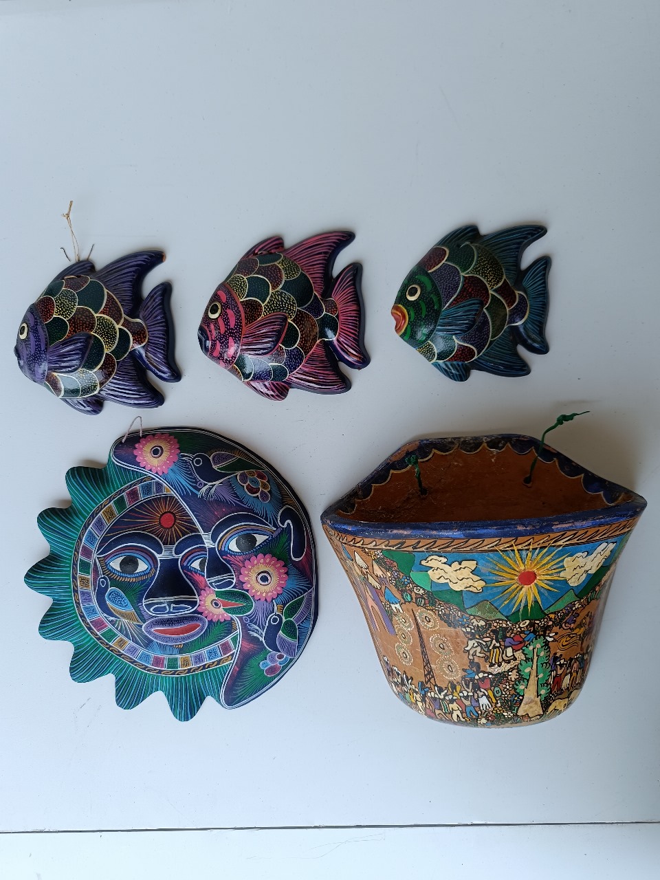 Medidas: peces 12×11, sol 20 cm, macetero 20×15 cm