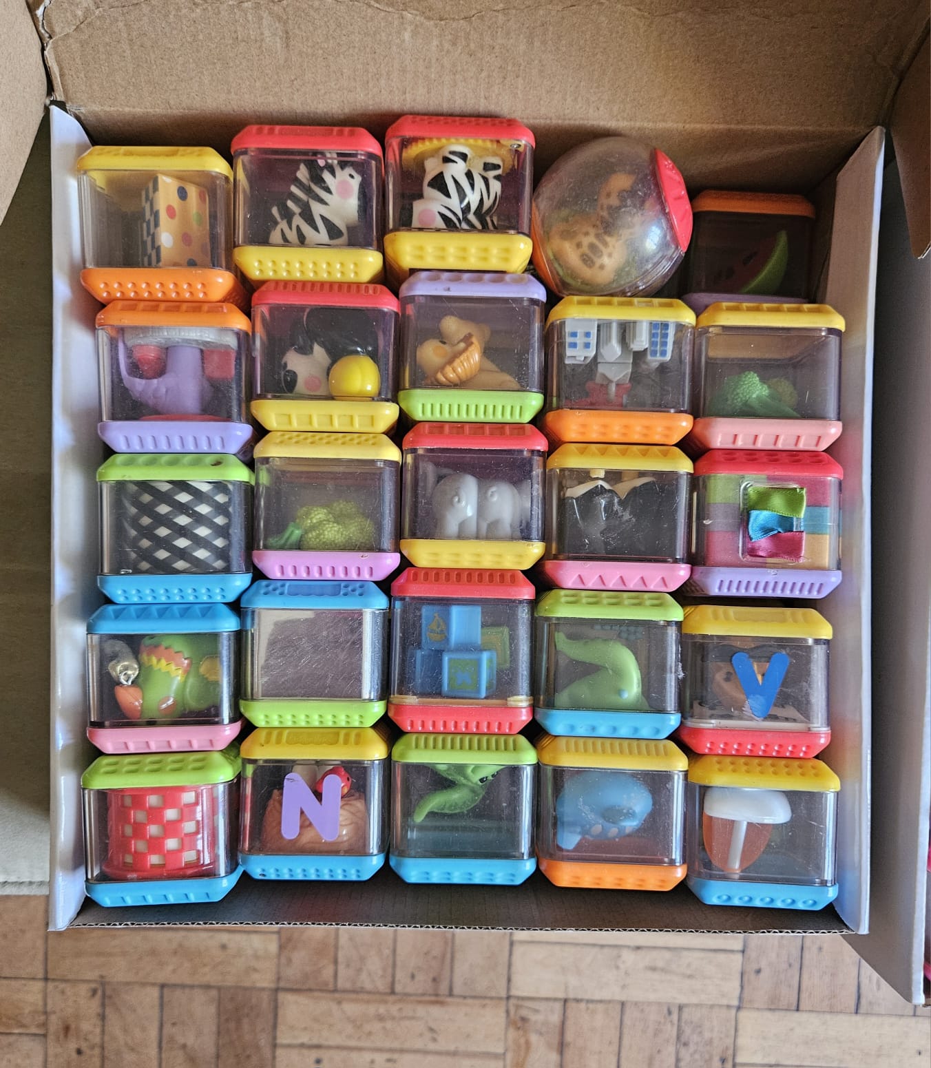 Etiquetas: Colección de 120 cubos sensoriales Fisher Price, colección de cubos Fisher Price, cubos de colores Fisher Price, cubos para bebés, cubos sensoriales Fisher Price, cubos sensoriales para bebés usados, juego de cubos Fisher Price, juego educativo Fisher Price, juguetes de segunda mano Fisher Price, juguetes educativos Fisher-Price, juguetes Fisher Price usados, juguetes para el desarrollo infantil, juguetes para niños Fisher Price, juguetes sensoriales, juguetes usados Fisher Price