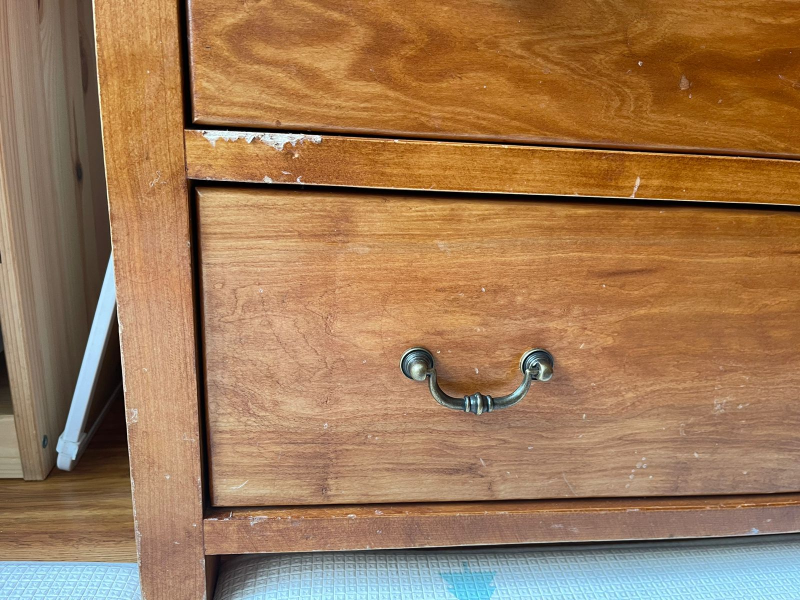 Detalles de rayones en cajones y cubiertas, uno de los cajones le falta un pedacito de madera