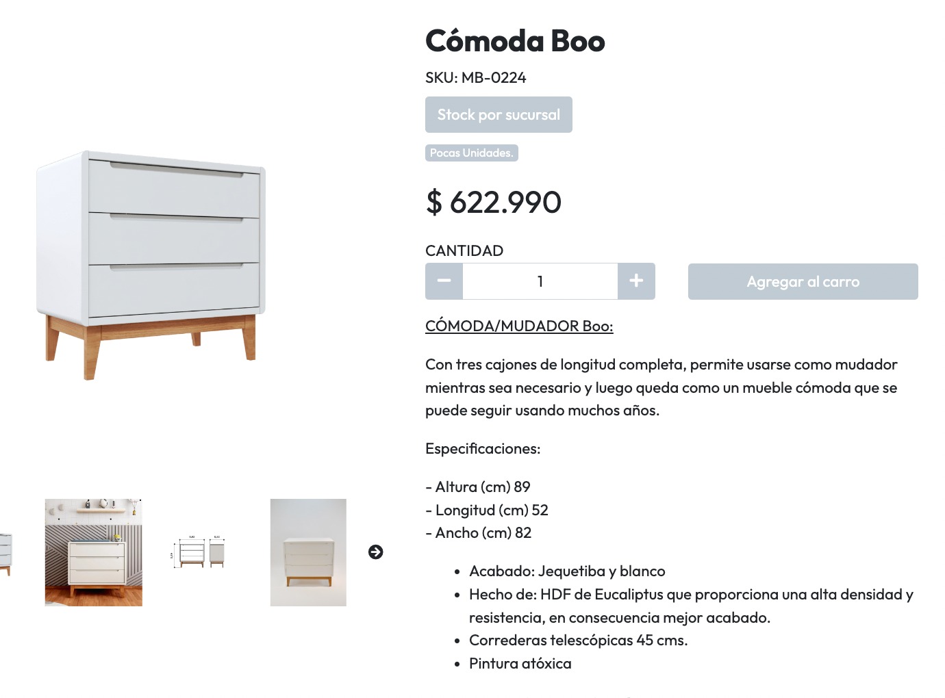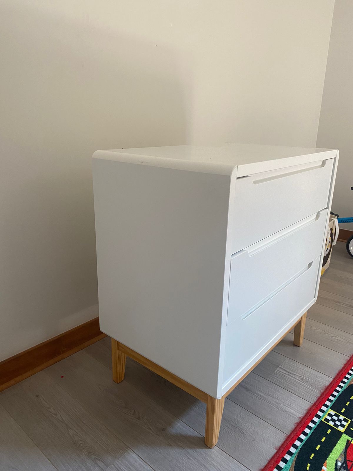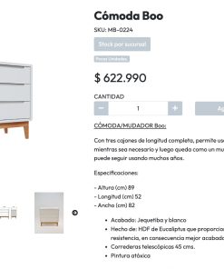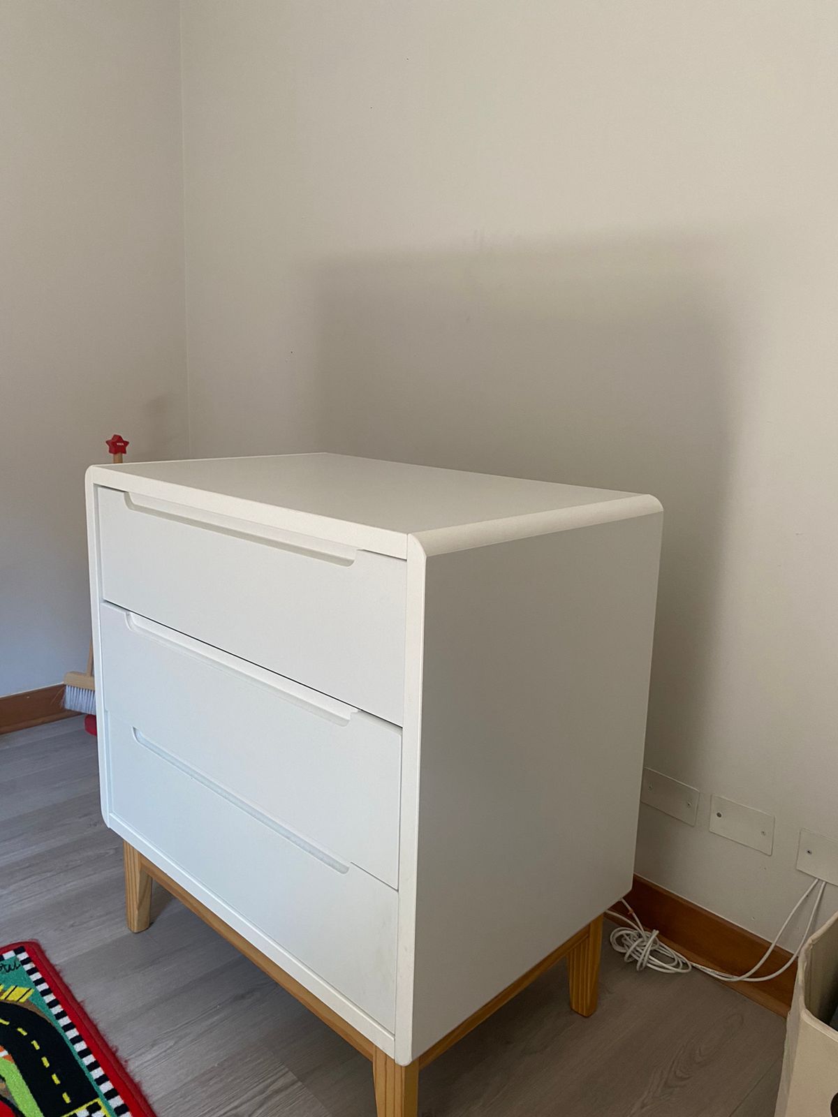 Pintura no tóxica, rieles telescópicos, se puede usar como mudador si pones una colchoneta en cubierta, 3 cajones longitud completa