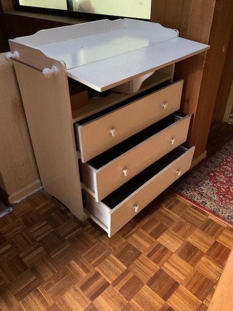 Etiquetas: Cómoda blanca, Cómoda de madera, Cómoda de segunda mano, cómoda lacada, Cómoda mudador madera lacada, Cómoda para bebé, Cómoda para cambiar pañales, Cómoda usada, comoda-mudador, mobiliario infantil, mueble de bebé, mueble de madera lacada, mueble de segunda mano, Mueble para habitación infantil, muebles de bebé, muebles usados