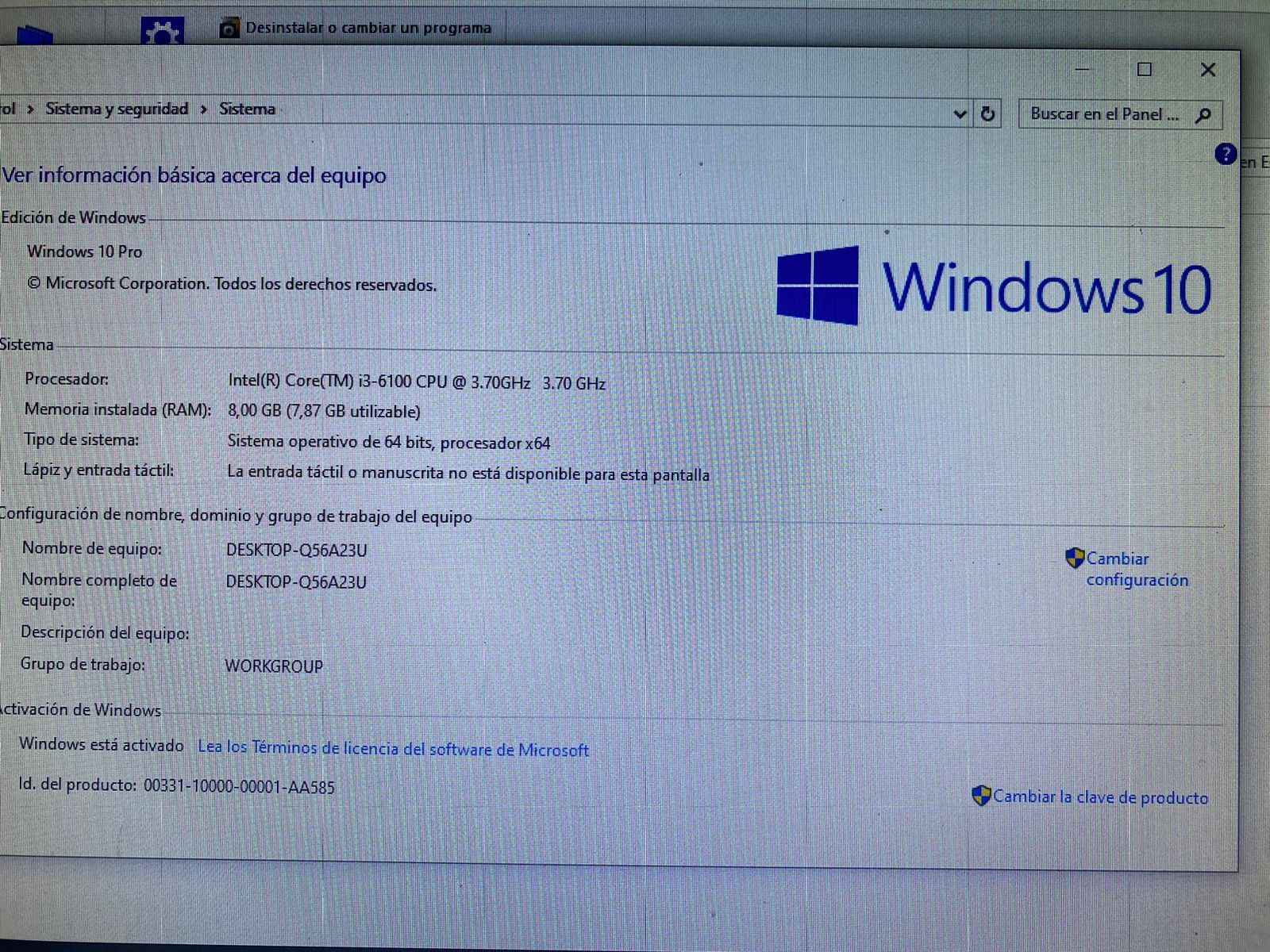 Procesador Intel core i3, memoria Ram 8 GB, almacenamiento 1 TB, Window 10