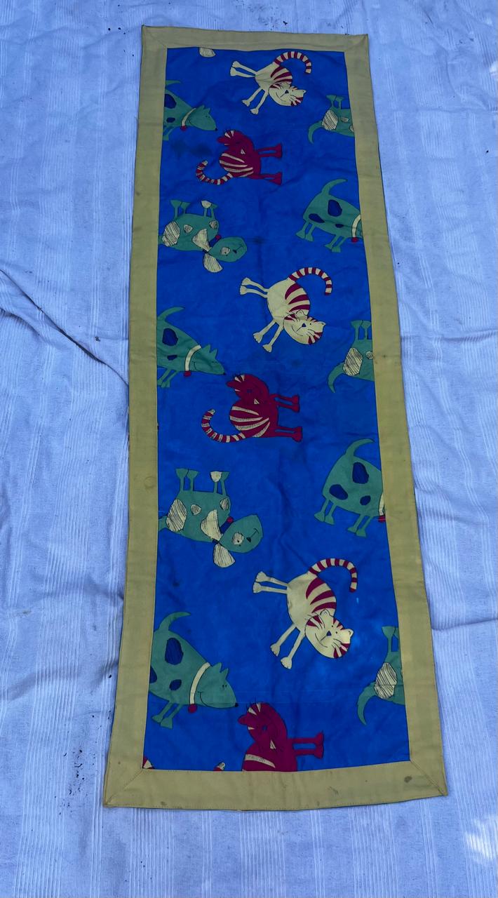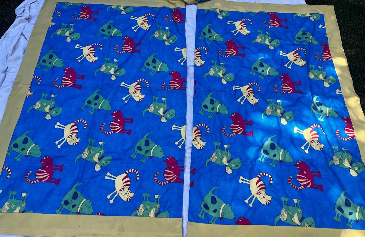 Medidas: cubrecama 112×156 cm, 2 store de 102×166 cm y una de 50×153 cm