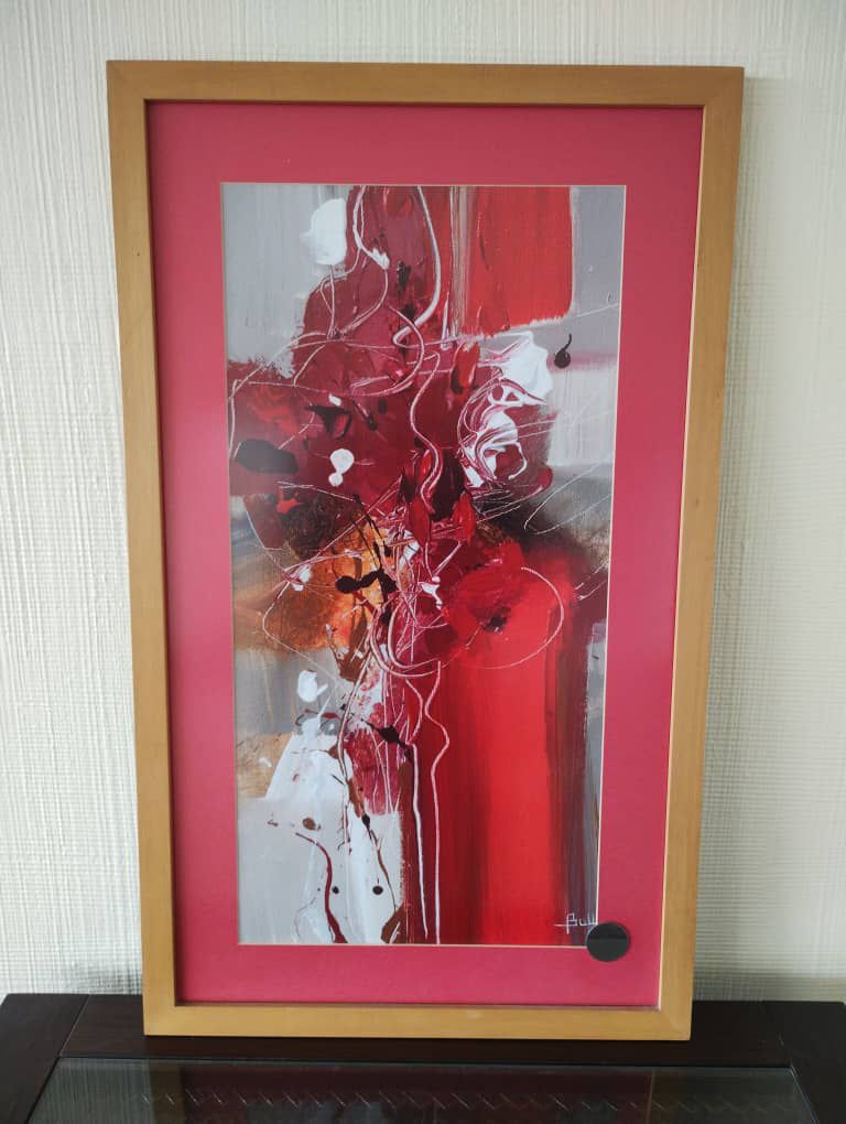 Etiquetas: buen estado, cuadro abstracto, enmarcado, tonos rojos