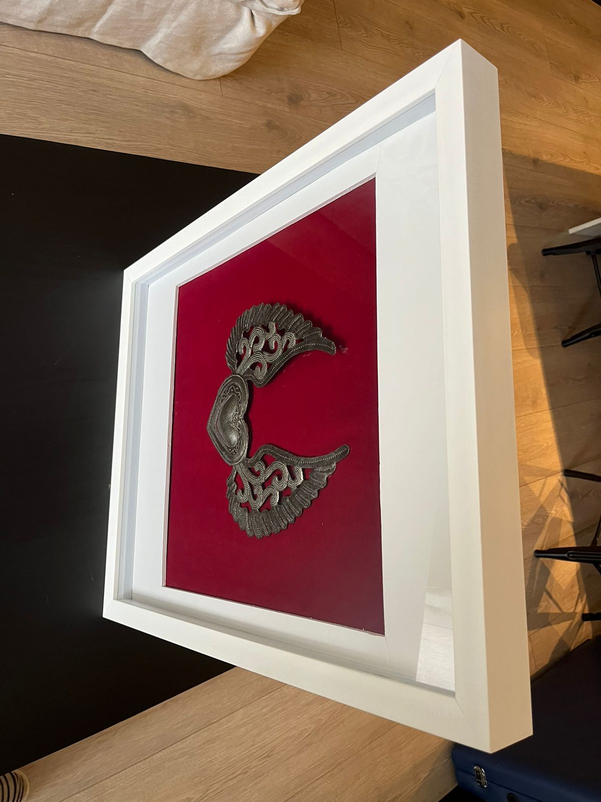 Etiquetas: alas, corazón, cuadro, metal, terciopelo rojo