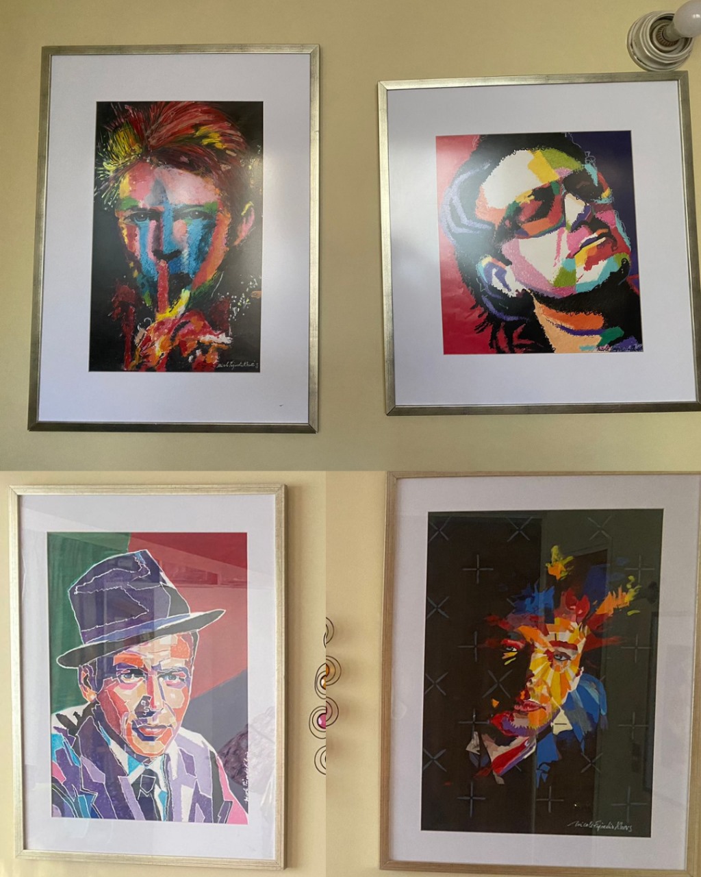 Medidas Bono 57 x 60 cm, Cerati 52 x 70 cm, Bowie 57 x 79 cm y Sinatra 52 x 70 cm