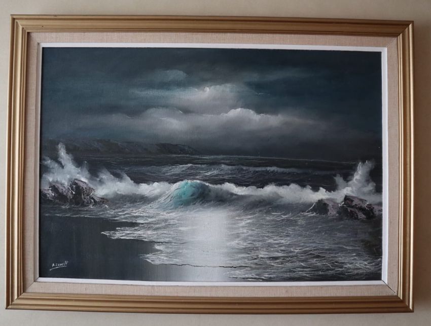 Etiquetas: A. Janiett, buen estado, cuadro olas, enmarcado, sobre, técnica óleo, tela