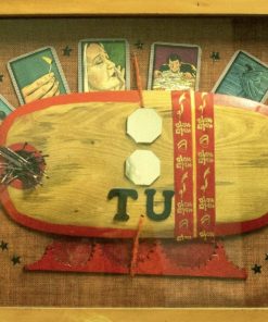 Etiquetas: asemblage, caras género, cuadro, enmarcado, fondo arpillera, obra única, técnica, telas