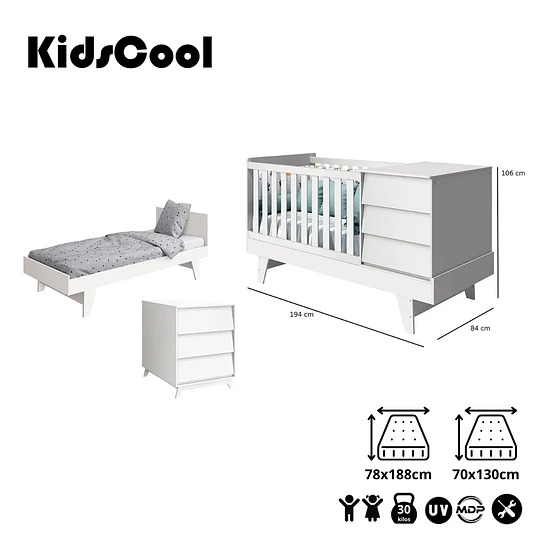 Cuna 3 en 1 Noah blanco Kidscool