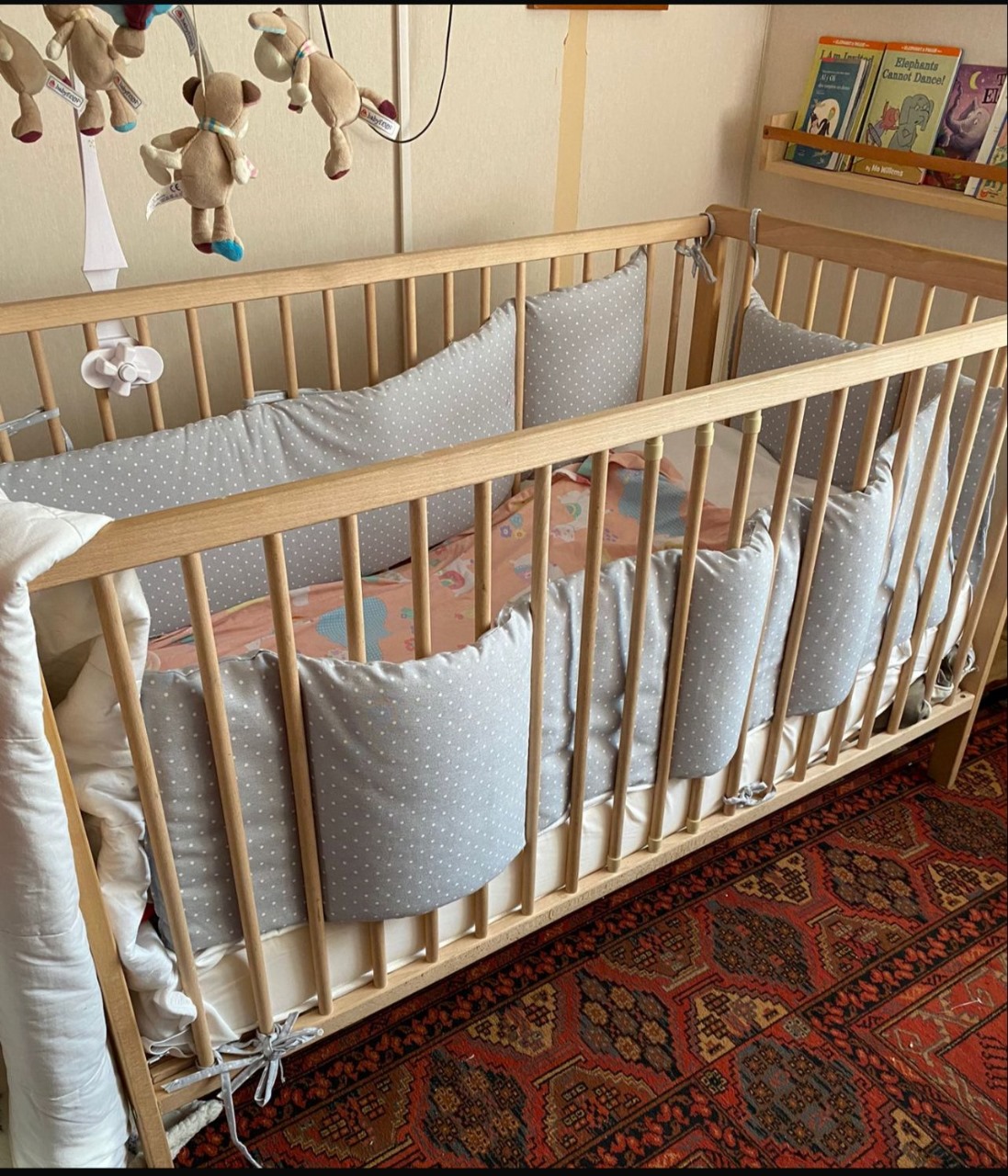 Medidas: 120x60x18-44 cm altura ajustable, colchón 120×60 cm
