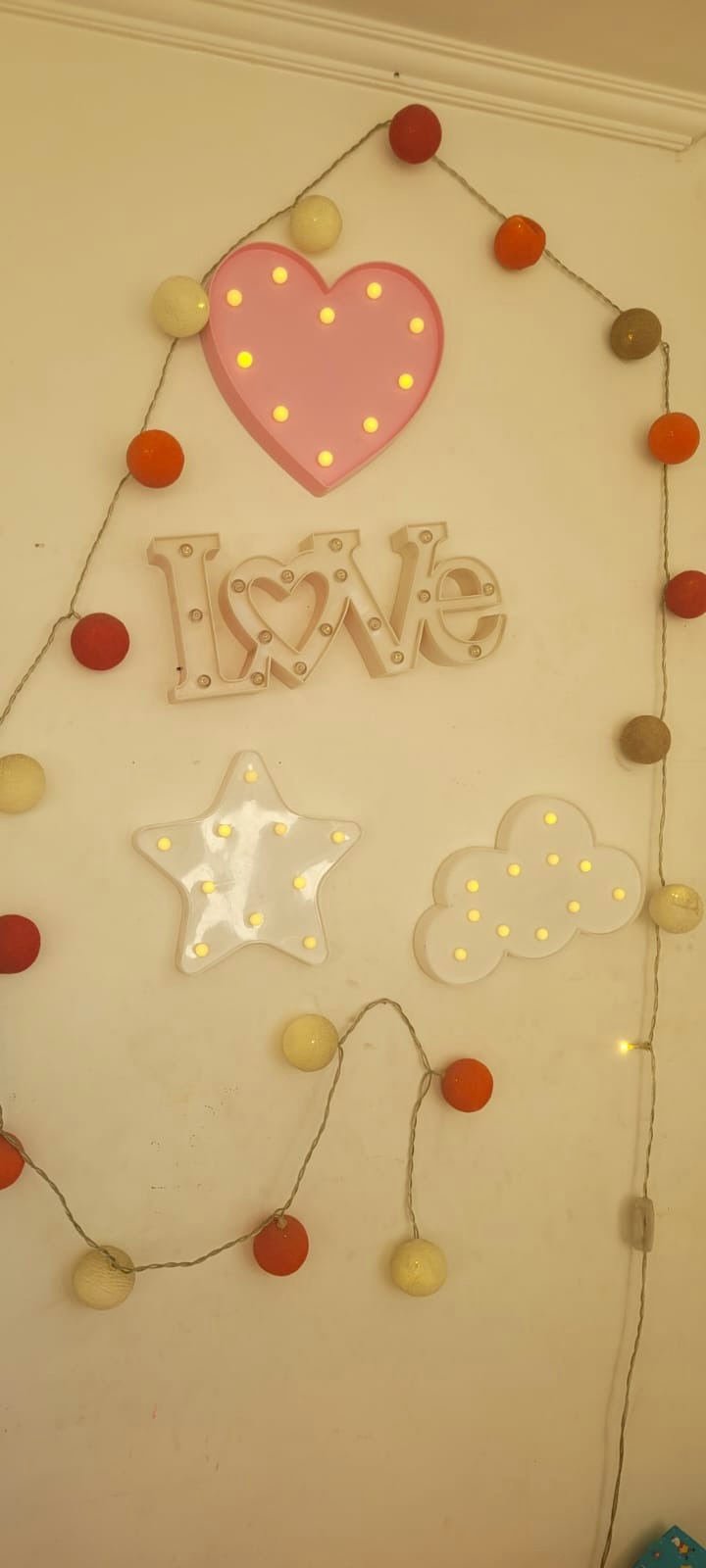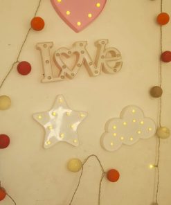 Carteles Love, nube, corazón y estrella + guirnalda de luces