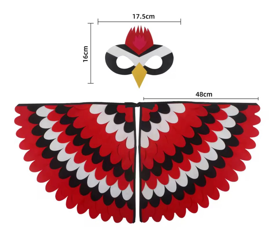 Medidas alas 48 cm y mascara 17.5 x 16 cm
