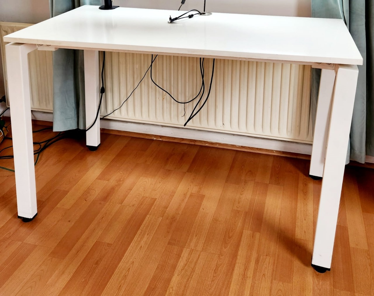 Etiquetas: Escritorio base metálica, Escritorio base metálica blanco, Escritorio con base metálica, Escritorio con base metálica blanca, Escritorio moderno, escritorio para oficina, Escritorio superficie de melamina, Escritorio usado en buen estado, escritorio-blanco, Mobiliario oficina blanco, Mobiliario oficina de segunda mano