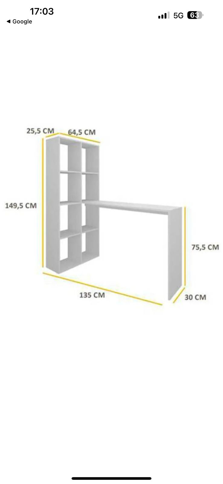 Medidas escritorio 315 x 30 x 75.5 cm y librero 64.5 x25.5 x 149.5 cm