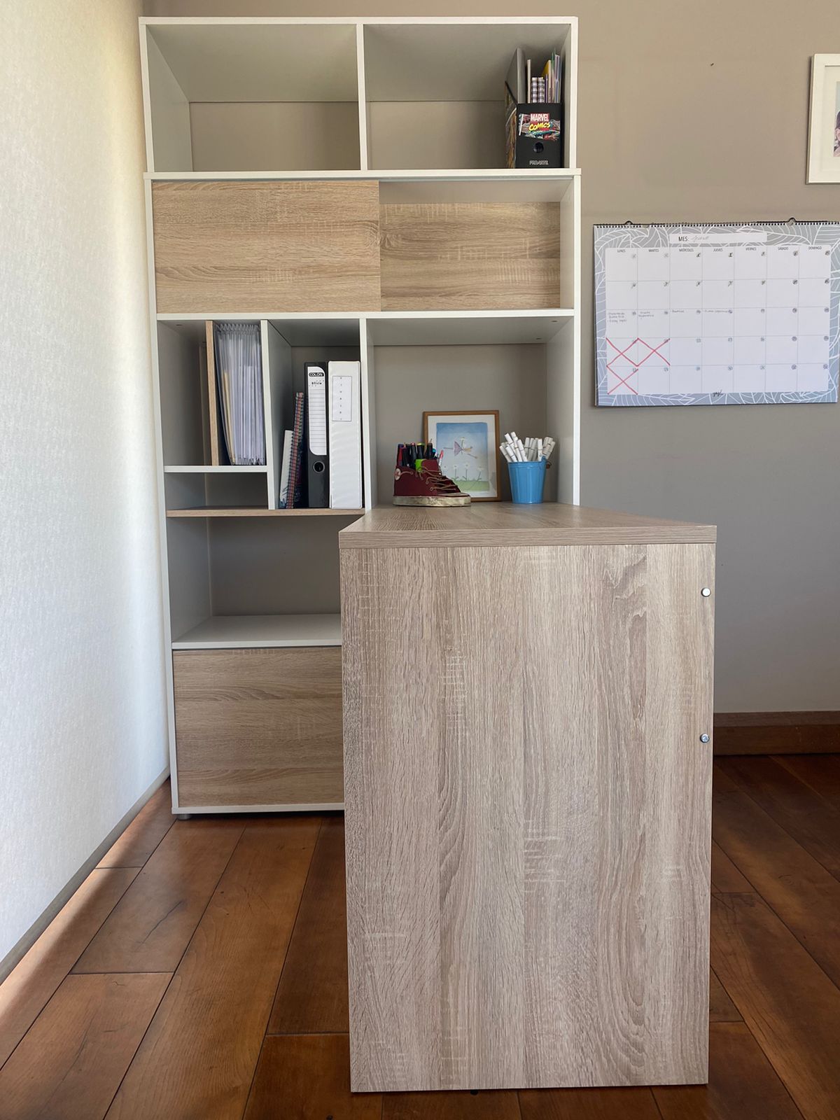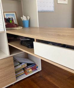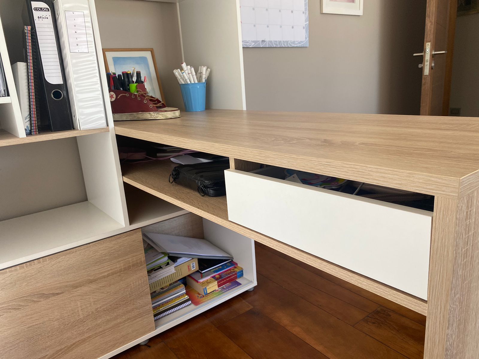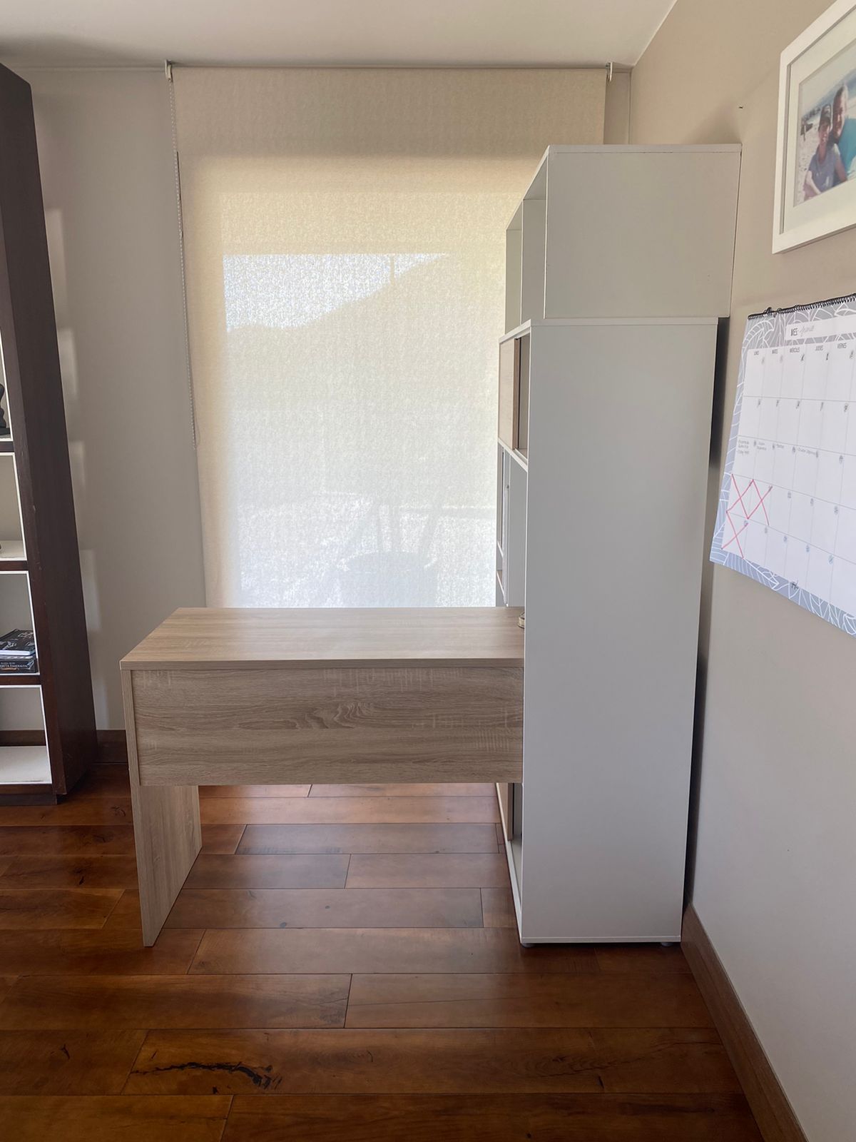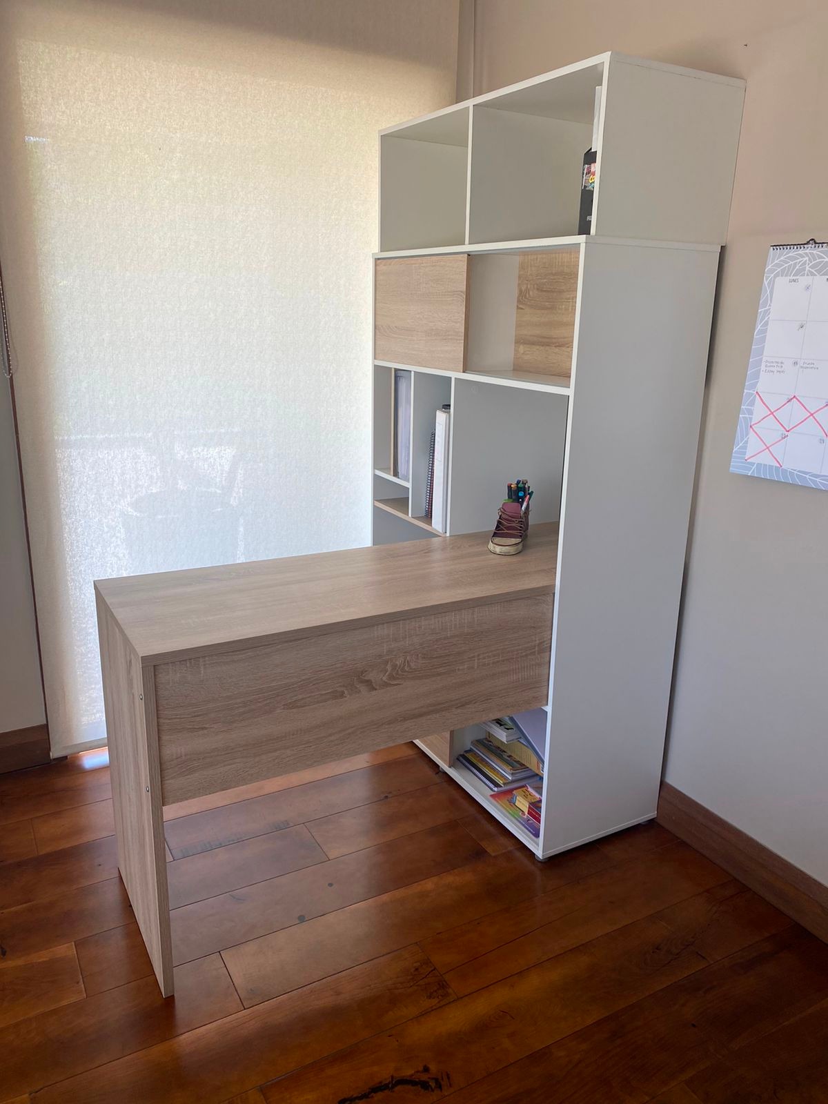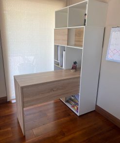 Medidas: 235×135 como L, 49 ancho cubierta, 76 alto cubierta y 235 cm alto total