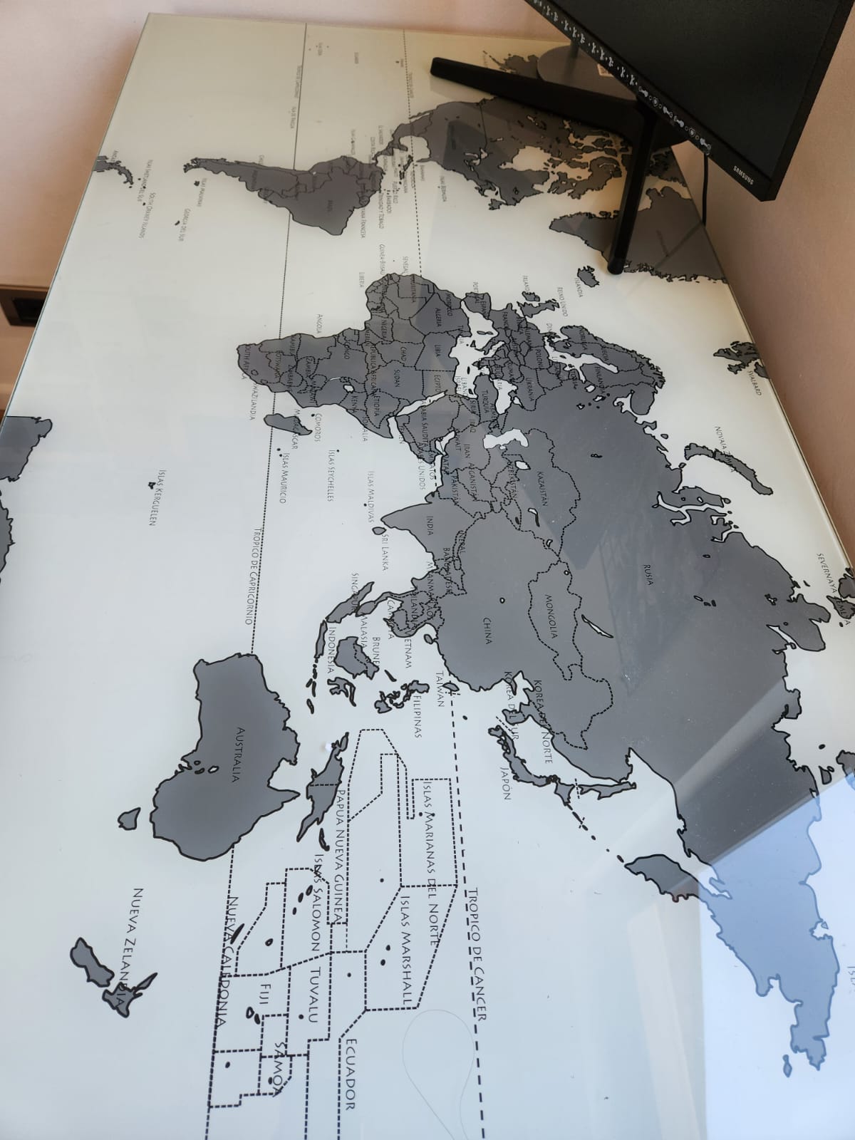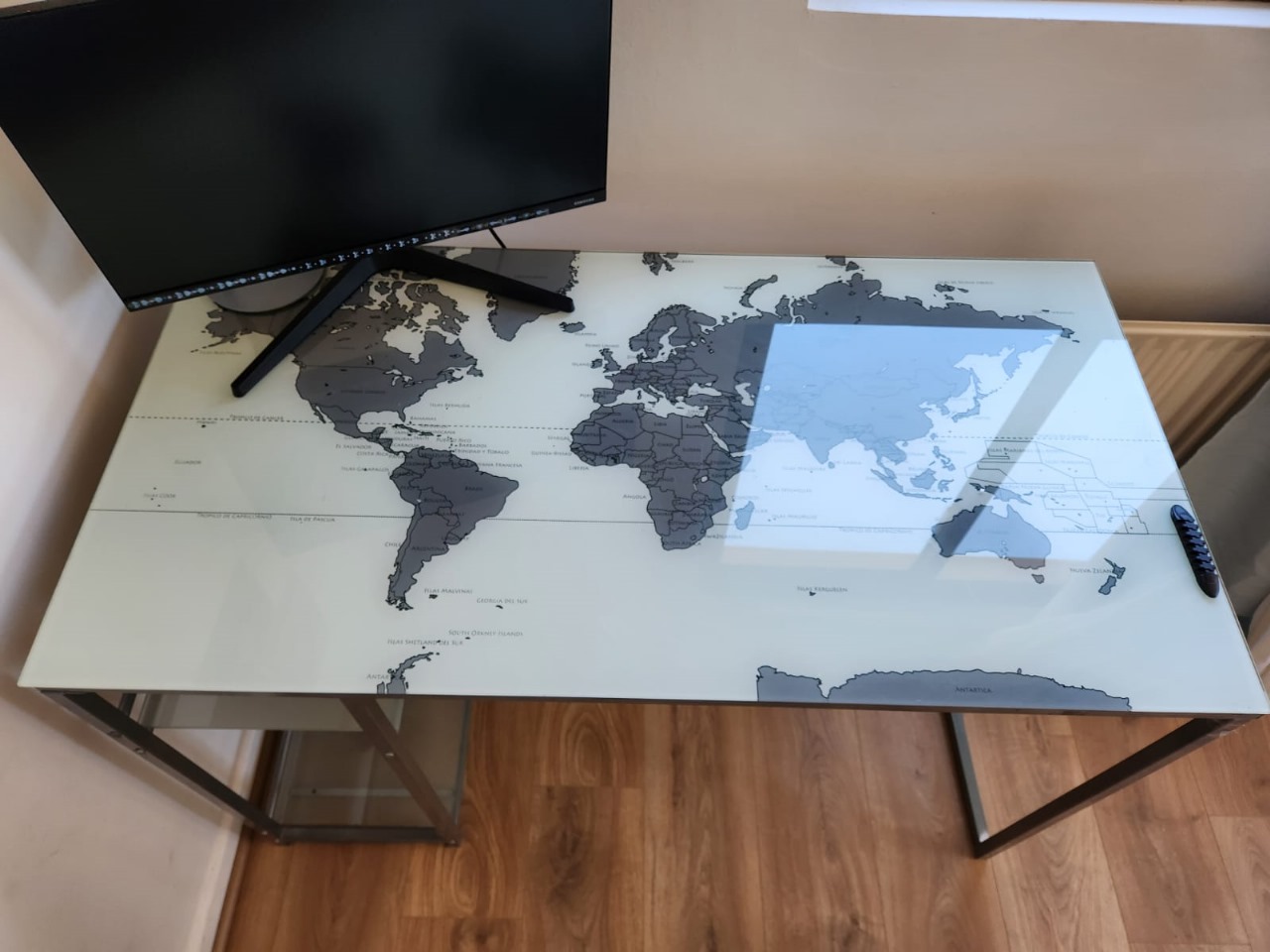 Etiquetas: escritorio con diseño único, escritorio con mapa del mundo, Escritorio de oficina, escritorio de vidrio, escritorio de vidrio en buen estado, Escritorio de vidrio mapa mundo, escritorio elegante, Escritorio moderno, escritorio para oficina, escritorio usado
