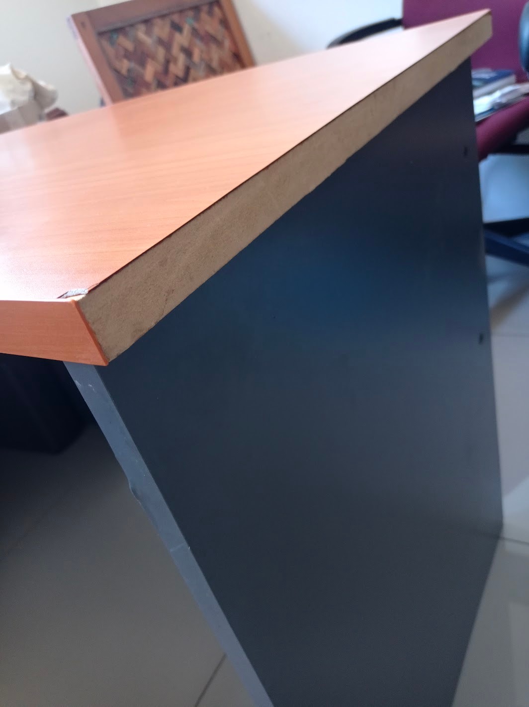 Un piquete en esquina, falta enchape lateral superior, cubierta en buen estado.