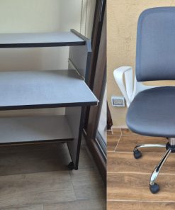 Etiquetas: Escritorio con bandeja, Escritorio de oficina, escritorio funcional, Escritorio gris con bandeja, Escritorio gris con silla, Escritorio gris usado, escritorio práctico, Mobiliario de oficina usado, muebles de oficina, muebles de segunda mano, muebles usados, silla de oficina, silla ergonómica usada, silla usada